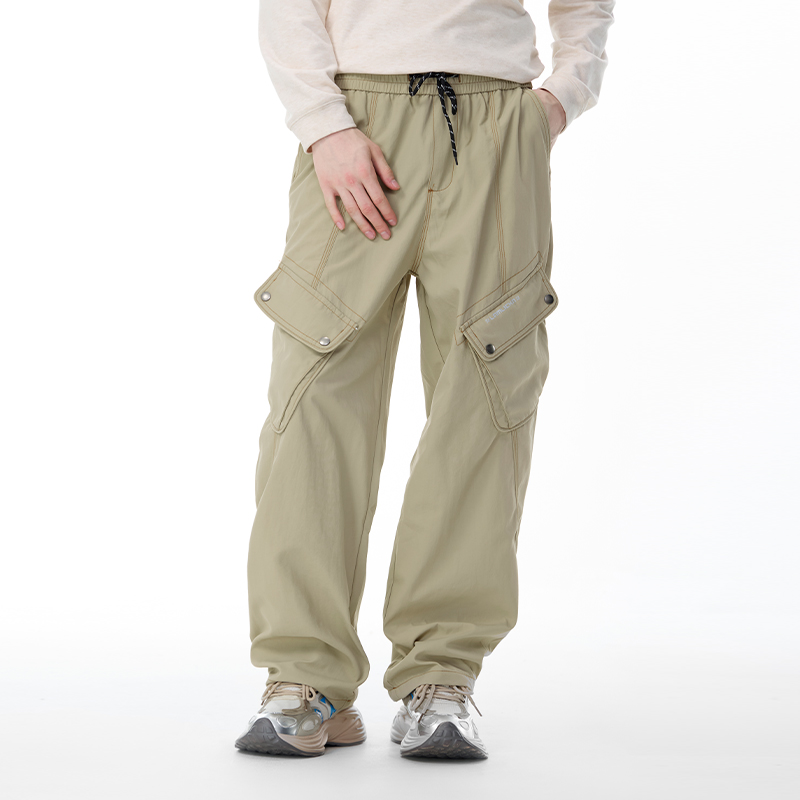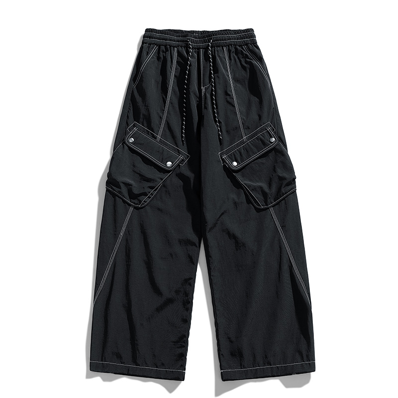 户外潮牌防泼水宽松直筒长裤 男秋季 女 休闲裤 LAMLICKA黑色口袋工装