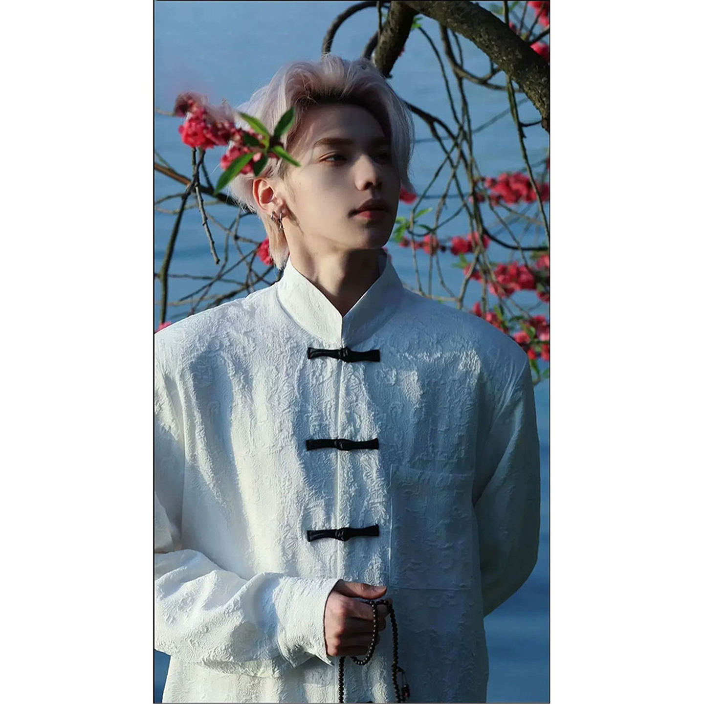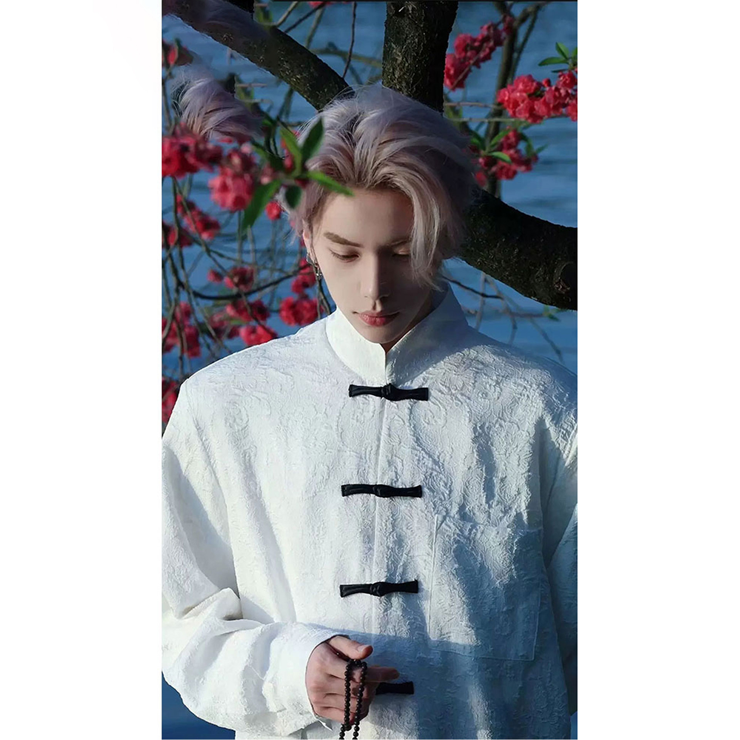 花纹刺绣长袖 衬衣复古唐装 衬衫 改良中山汉服唐装 外套 男秋季 新中式