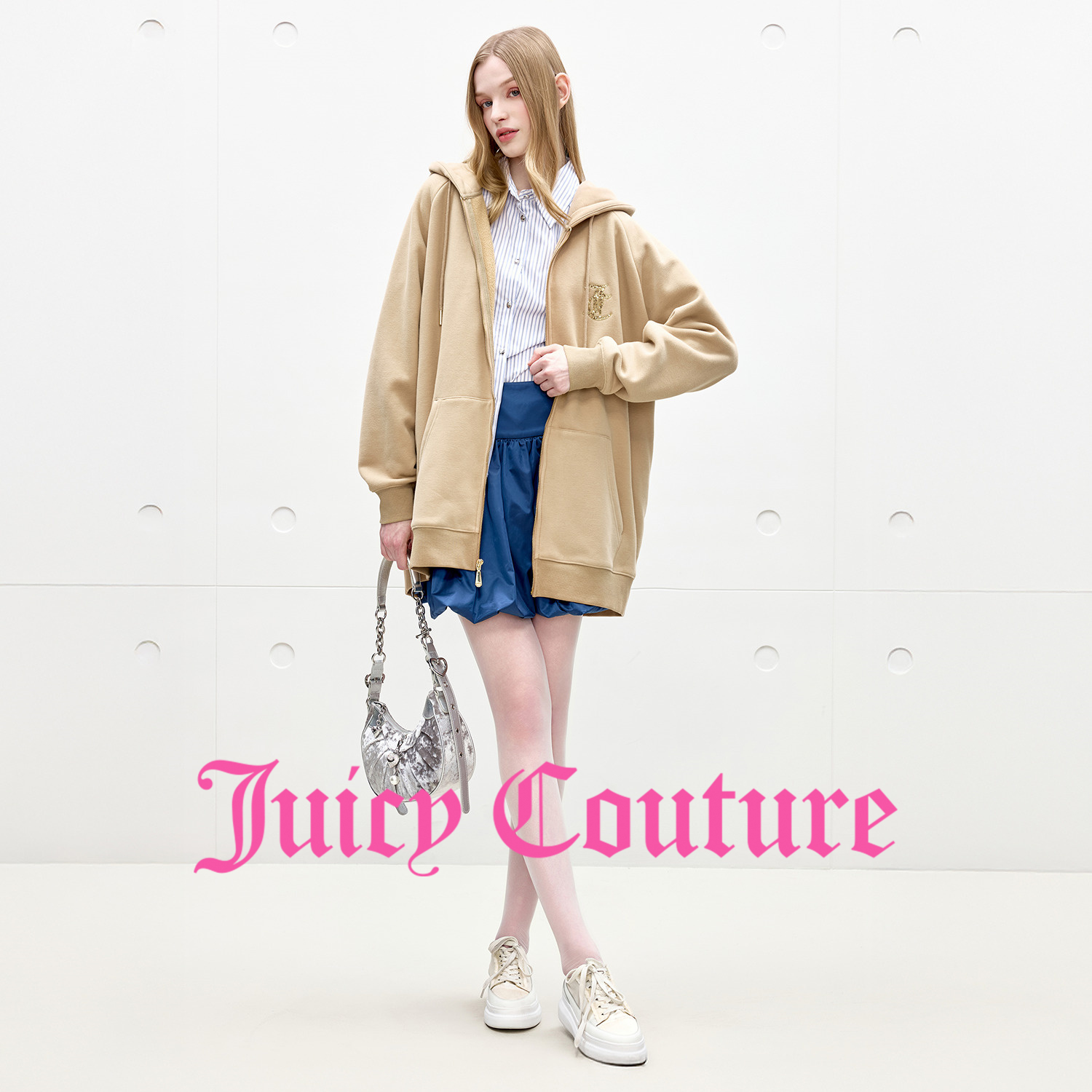 Juicy 加绒刺绣连帽拉链中长卫衣 Couture橘滋外套女25年秋冬新款