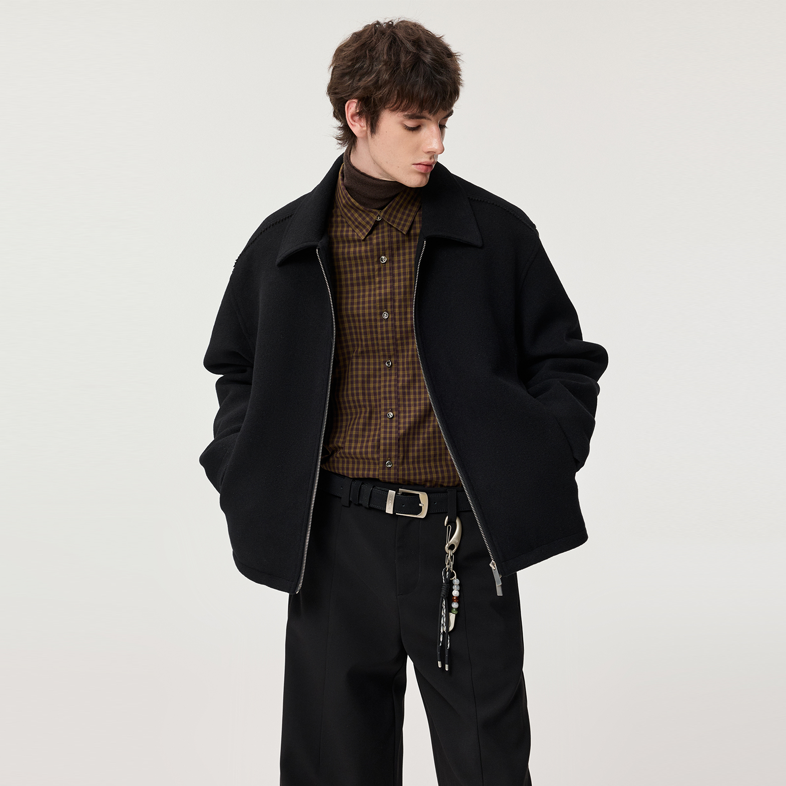 斜纹翻领工装 秋季 外套胖子宽松加肥加大肌理感夹克 男装 黑劲大码