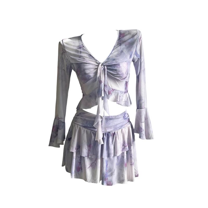 紫涵拼接花苞型半身裙女秋季 高腰显瘦休闲通勤百搭宽松中长裙 新款