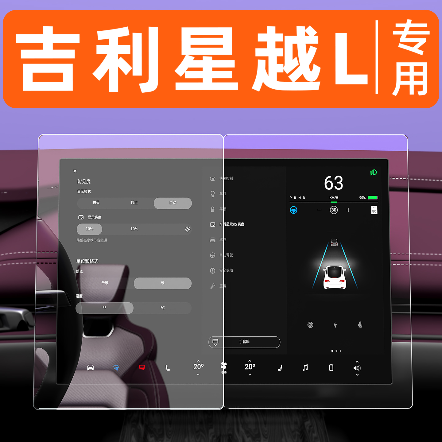 适用于吉利星越L屏幕钢化膜中控显示大屏贴膜内饰车机导航保护膜