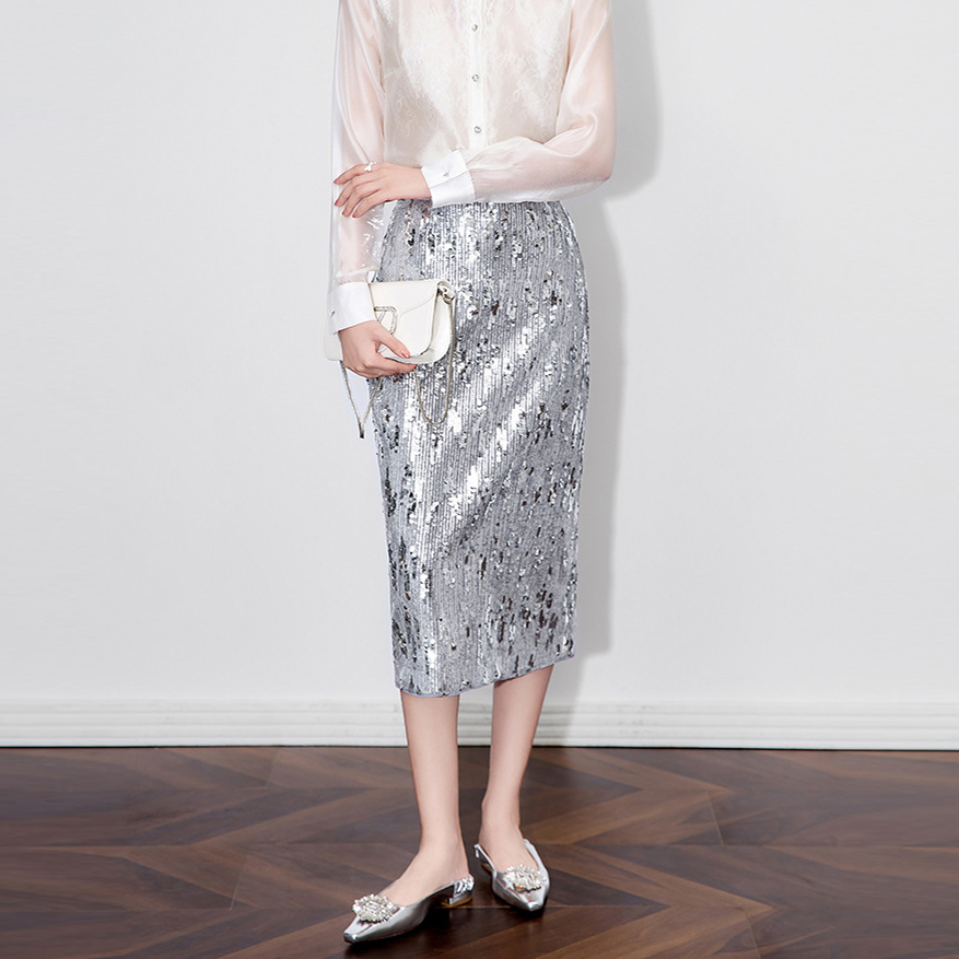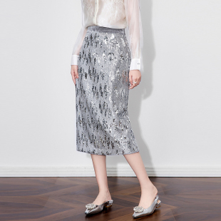 飘逸气质不规则珠光a字半身裙春秋女长裙大摆裙 2508 BenHou 本后