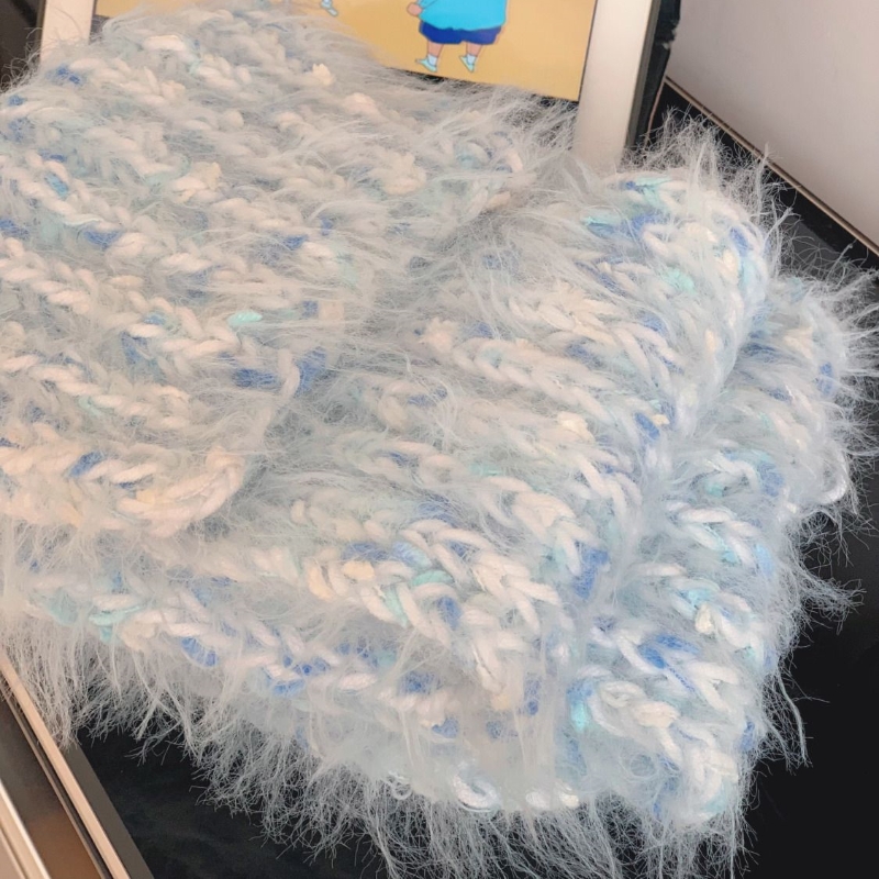 冰条线粗毛线勾手工编织拖鞋 手织围巾diy送情侣女友钩针钩织钩鞋