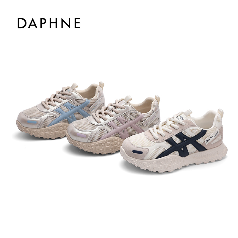 红色运动休闲阿甘鞋 德训鞋 百思图小彩糖25秋新款 女 张予曦同款