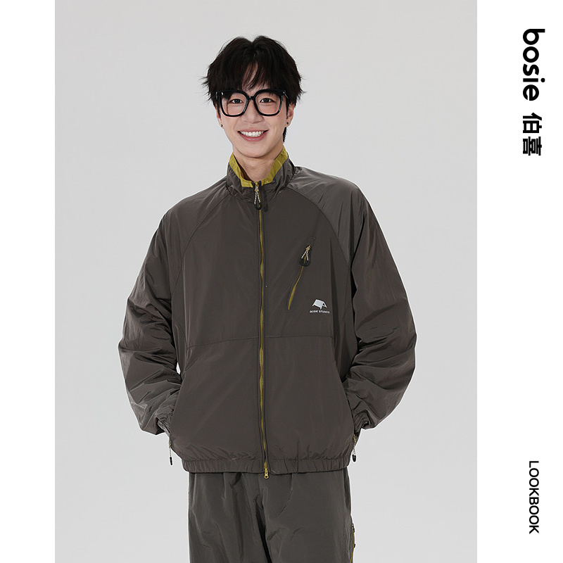 太平鸟男装 休闲外套 立领通勤行政夹克2025秋冬拼接宽松茄克男士