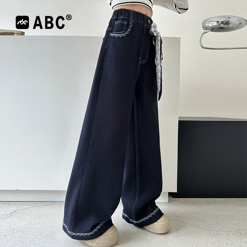 防褪色儿童弯刀裤 裤 春秋款 女孩洋气秋装 子 2025新款 左西女童牛仔裤