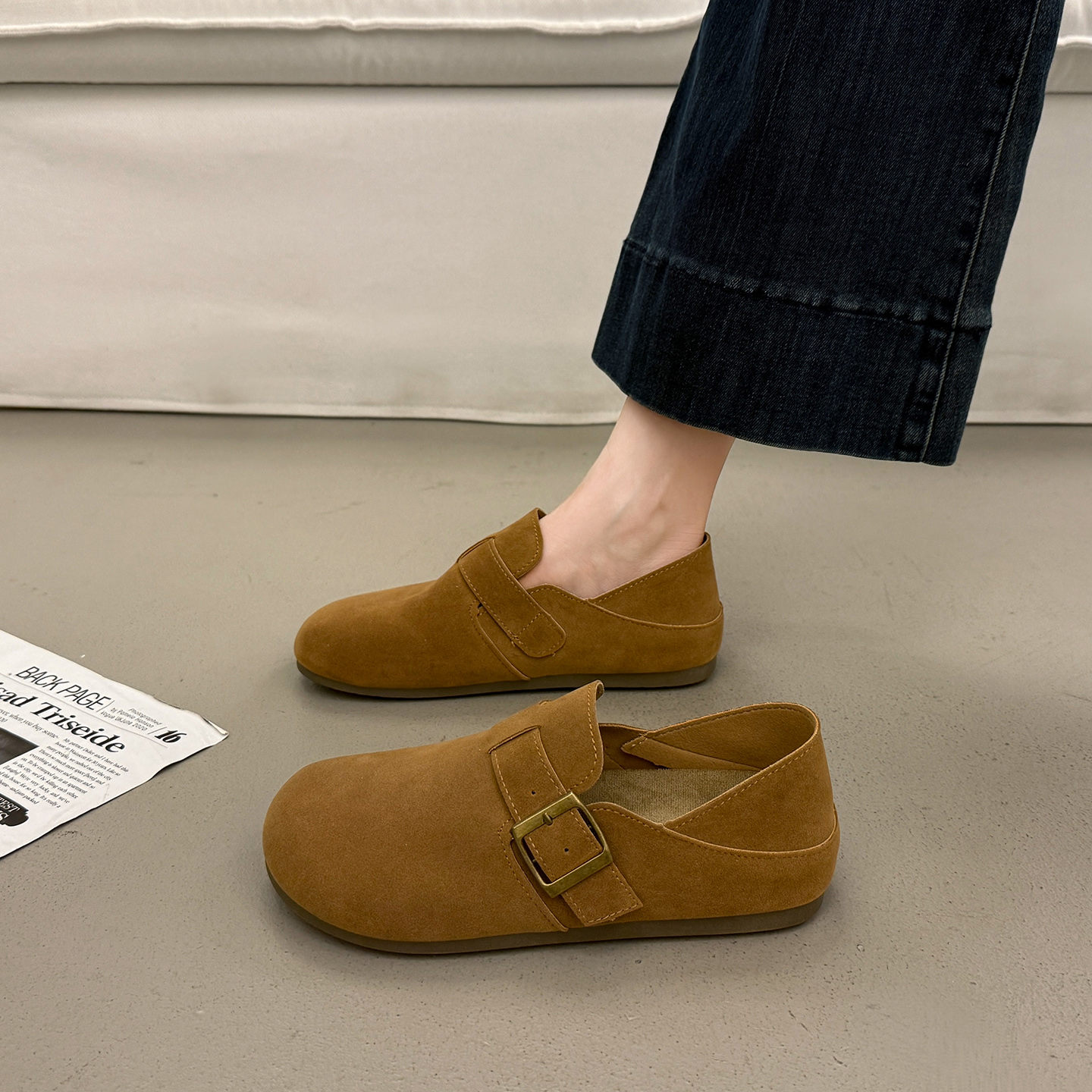 圆头深口单鞋 一脚蹬平底豆豆鞋 女秋季 2025新款 复古厚底勃肯鞋 法式