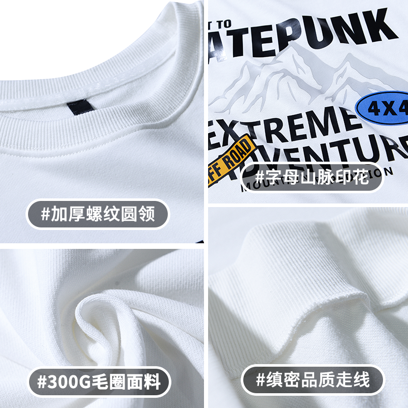 国潮美式 高街宽松情侣上衣 oversize小众套头圆领卫衣男无帽春秋季