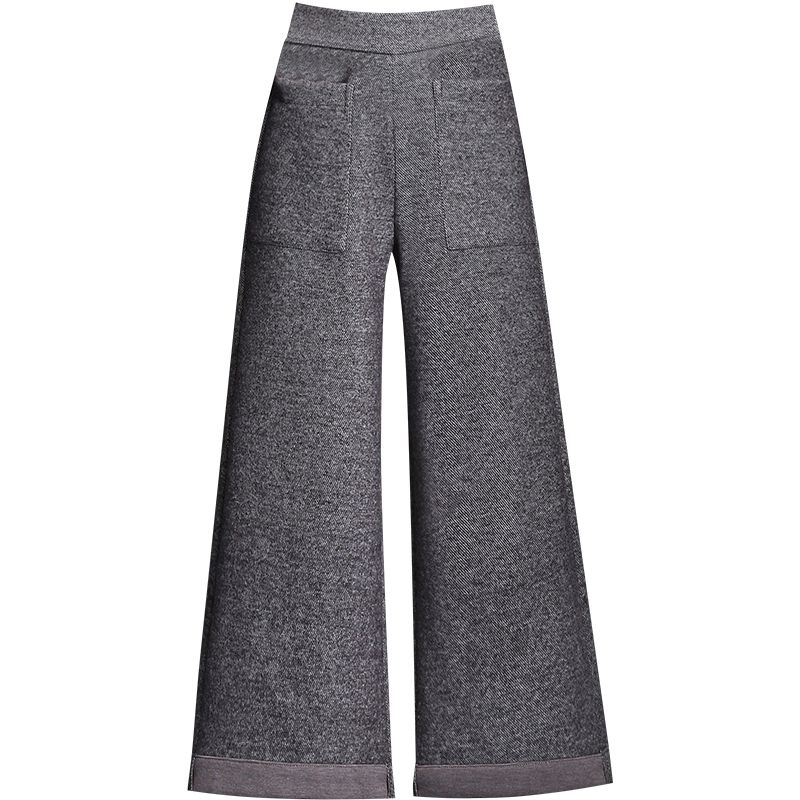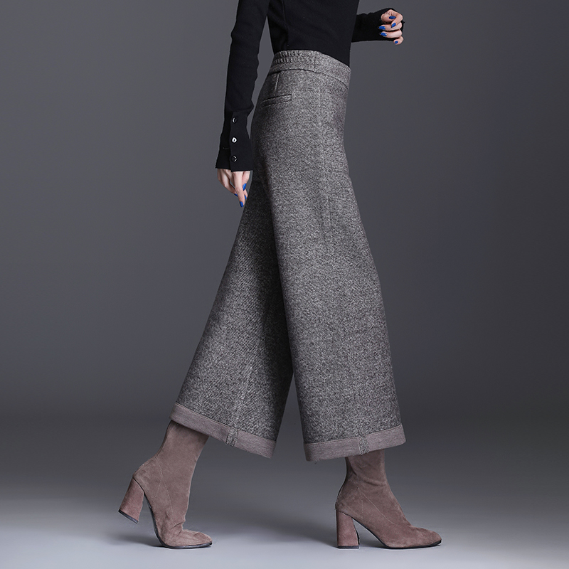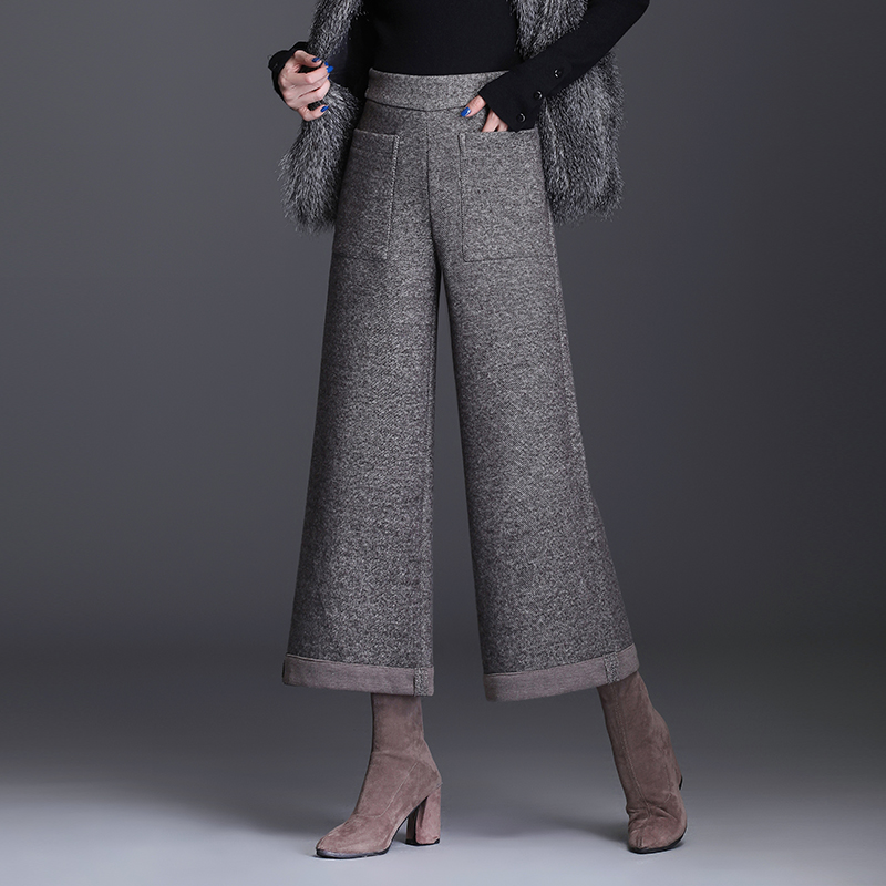高腰显瘦小个子八分卷边直筒靴裤 羊毛呢阔腿裤 女中年妈妈秋冬新款