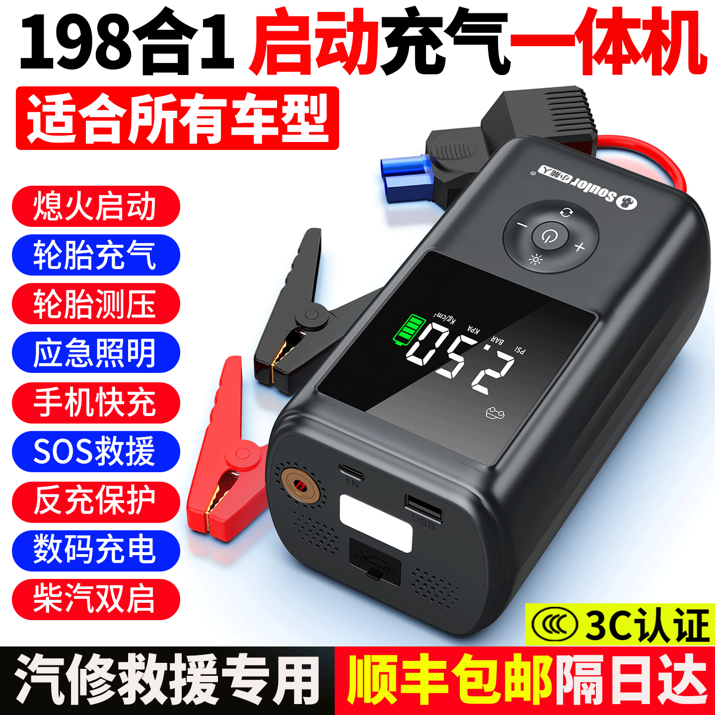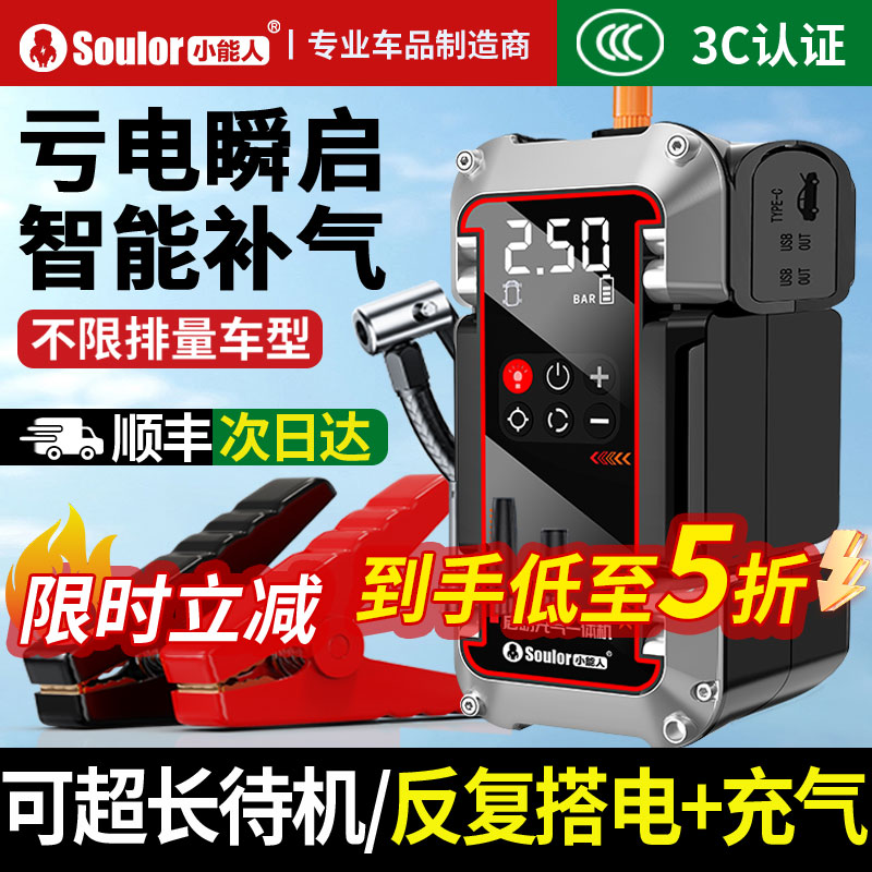 小能人汽车应急启动电源充气泵一体机车载电瓶搭电宝打火神器