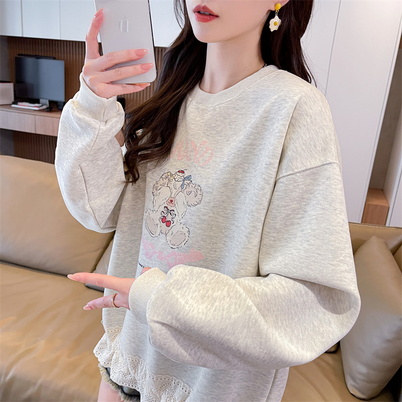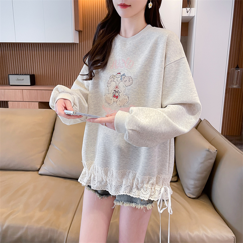 宽松薄款 春秋韩版 小个子学生上衣外套 爆款 蕾丝花边卫衣女2025新款