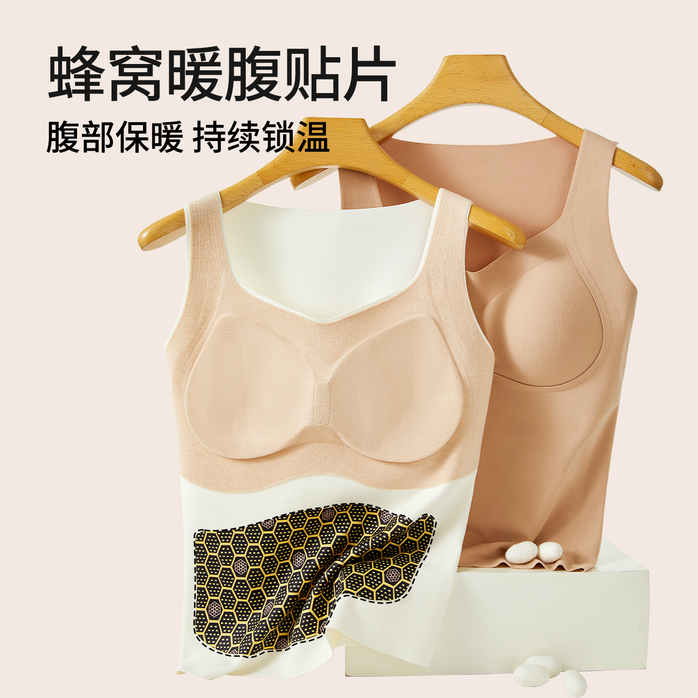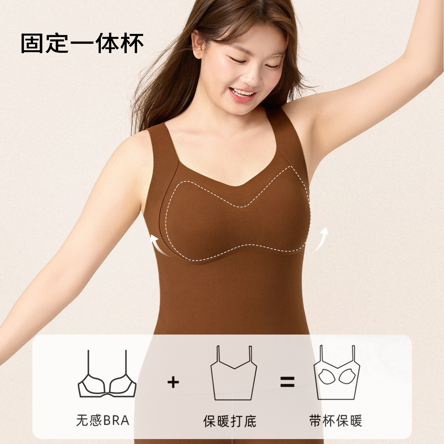 为体贴大码 无痕内搭加绒暖腹打底上衣 保暖背心女带胸垫胖mm秋冬季