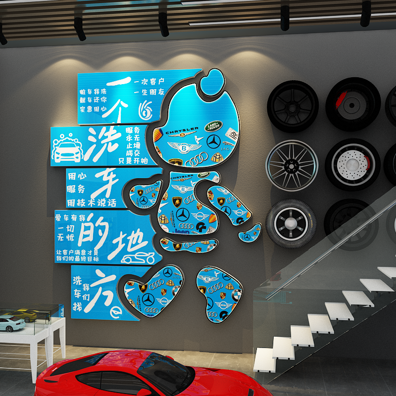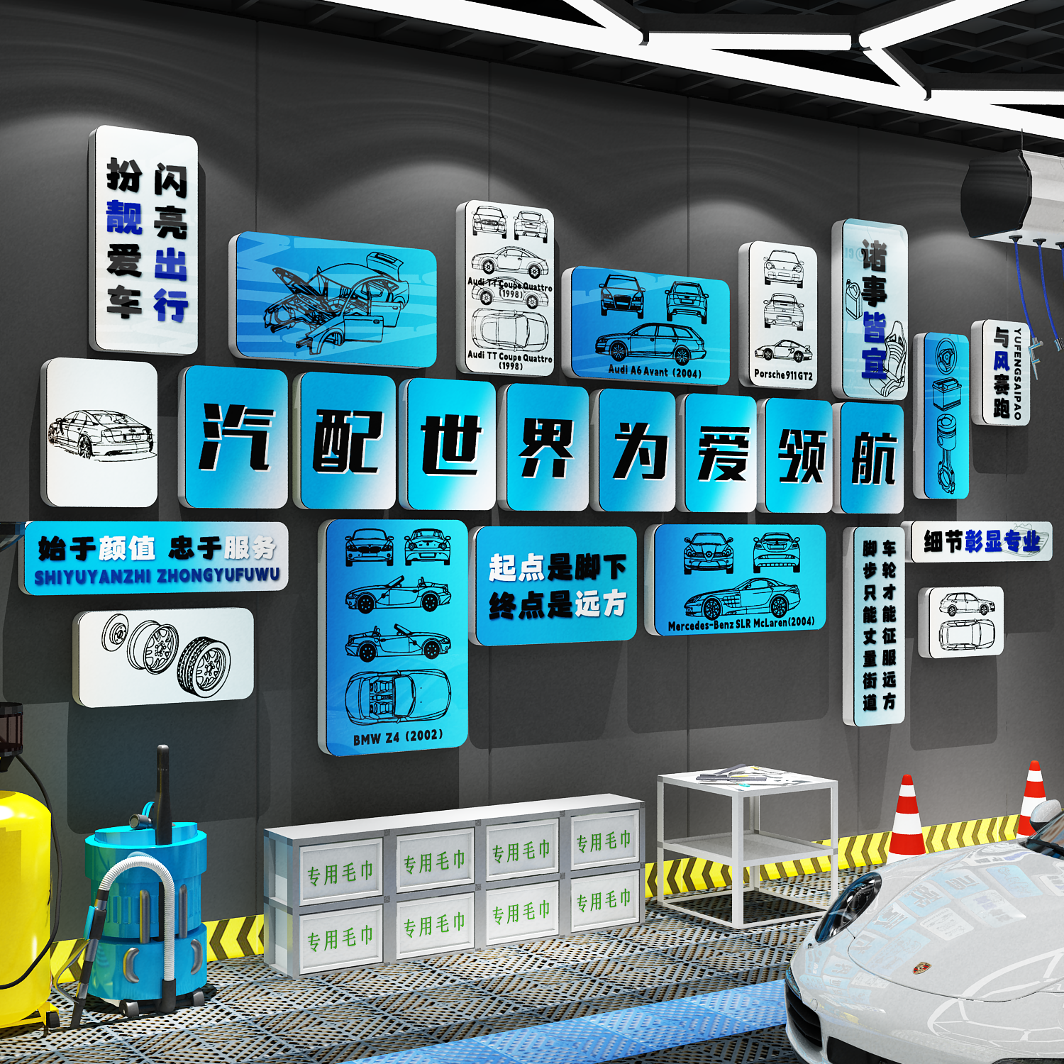 汽车美容贴膜店墙面装 饰修理车间洗车广告宣传海报背景形象贴纸画