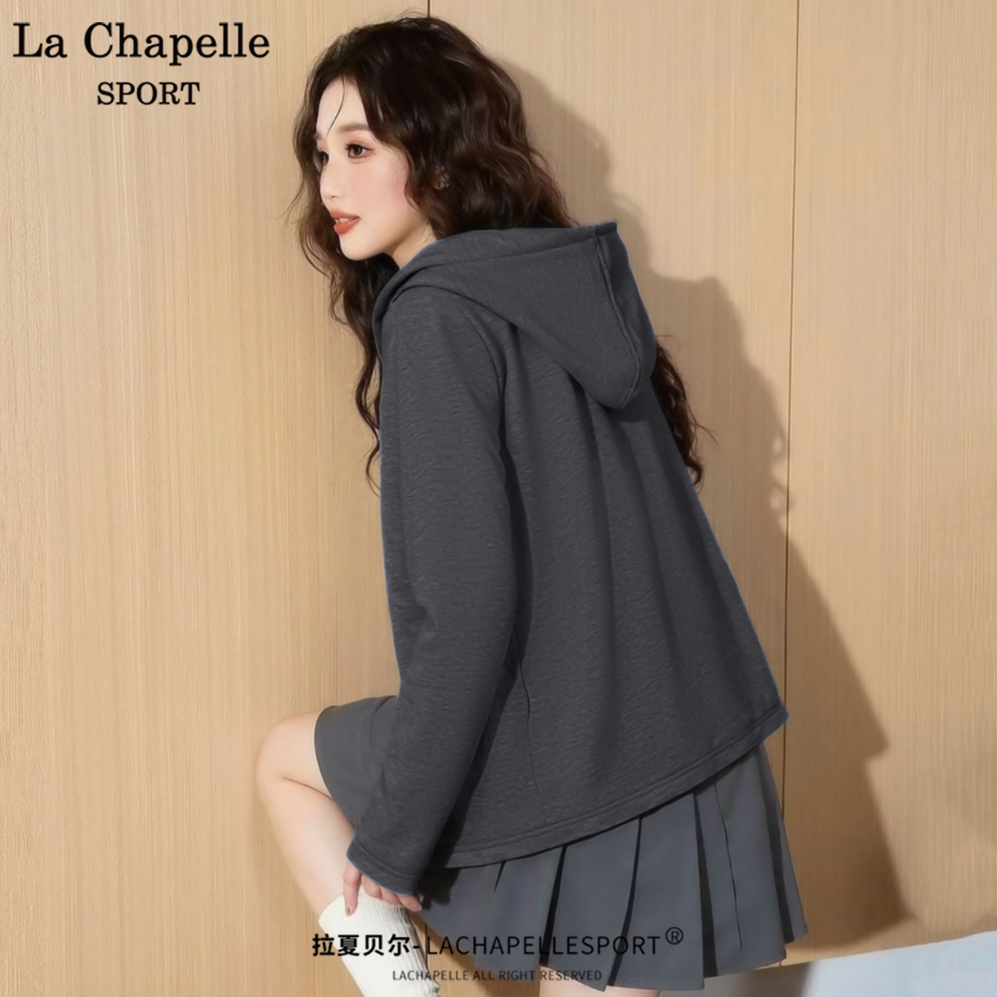 秋冬新款 开衫 修身 收腰上衣早秋穿搭美式 短款 灰色连帽卫衣外套女款