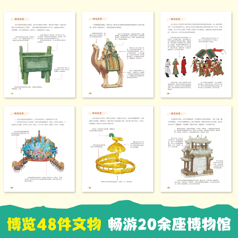 考古小知识儿童文学经典 手绘美图趣味解说 故事 视觉盛宴全套4册青铜器陶器玉器书画织绣饰品 漫画国宝博物馆里