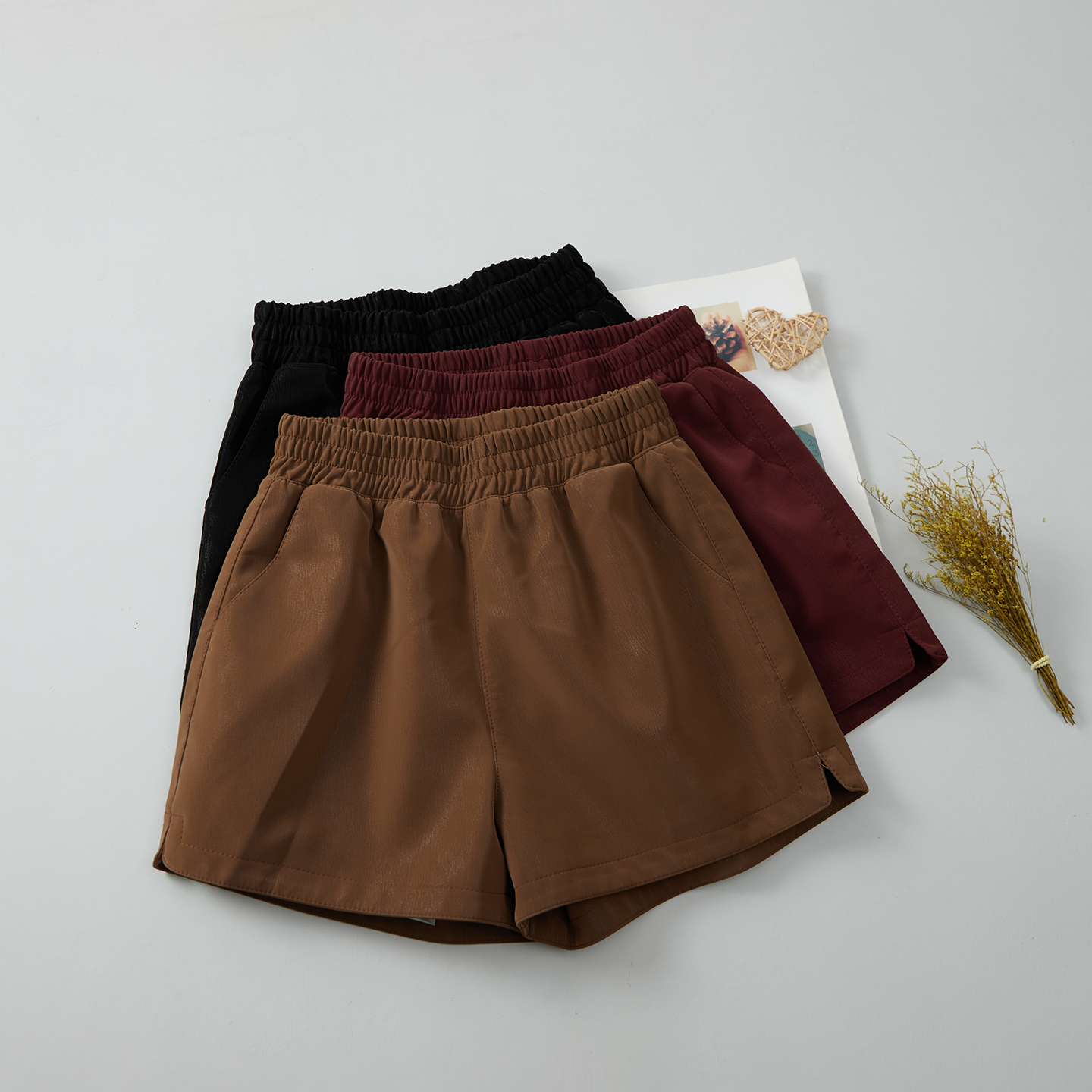 商品标签:黑色皮短裤