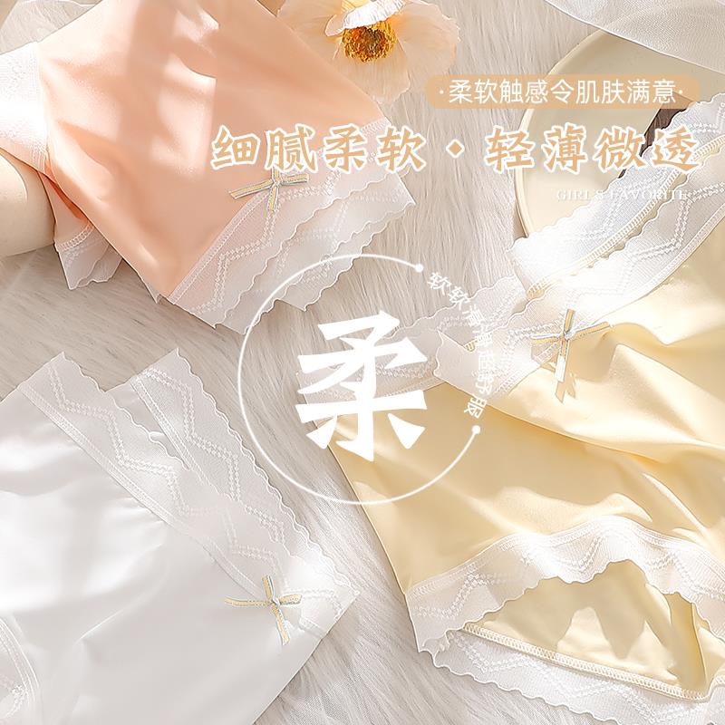 裸感中腰少女生柔软三角裤 7A级抑菌桑蚕丝裆2025新款 纯棉女士内裤