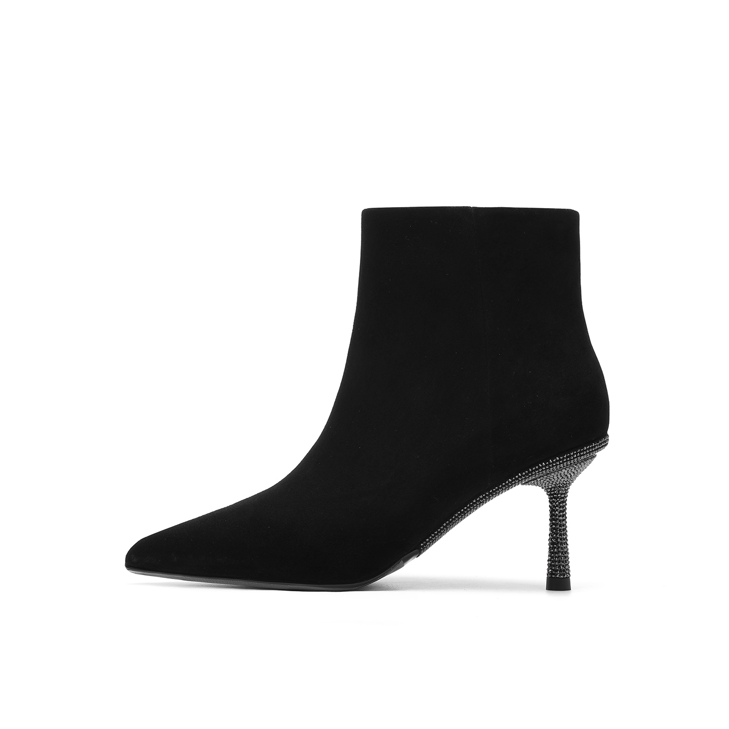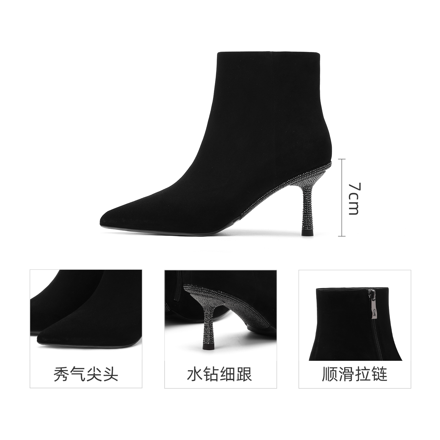 靴尖头细跟百搭女短靴RA247206 气质时装 诺贝达水钻女靴冬季 新款
