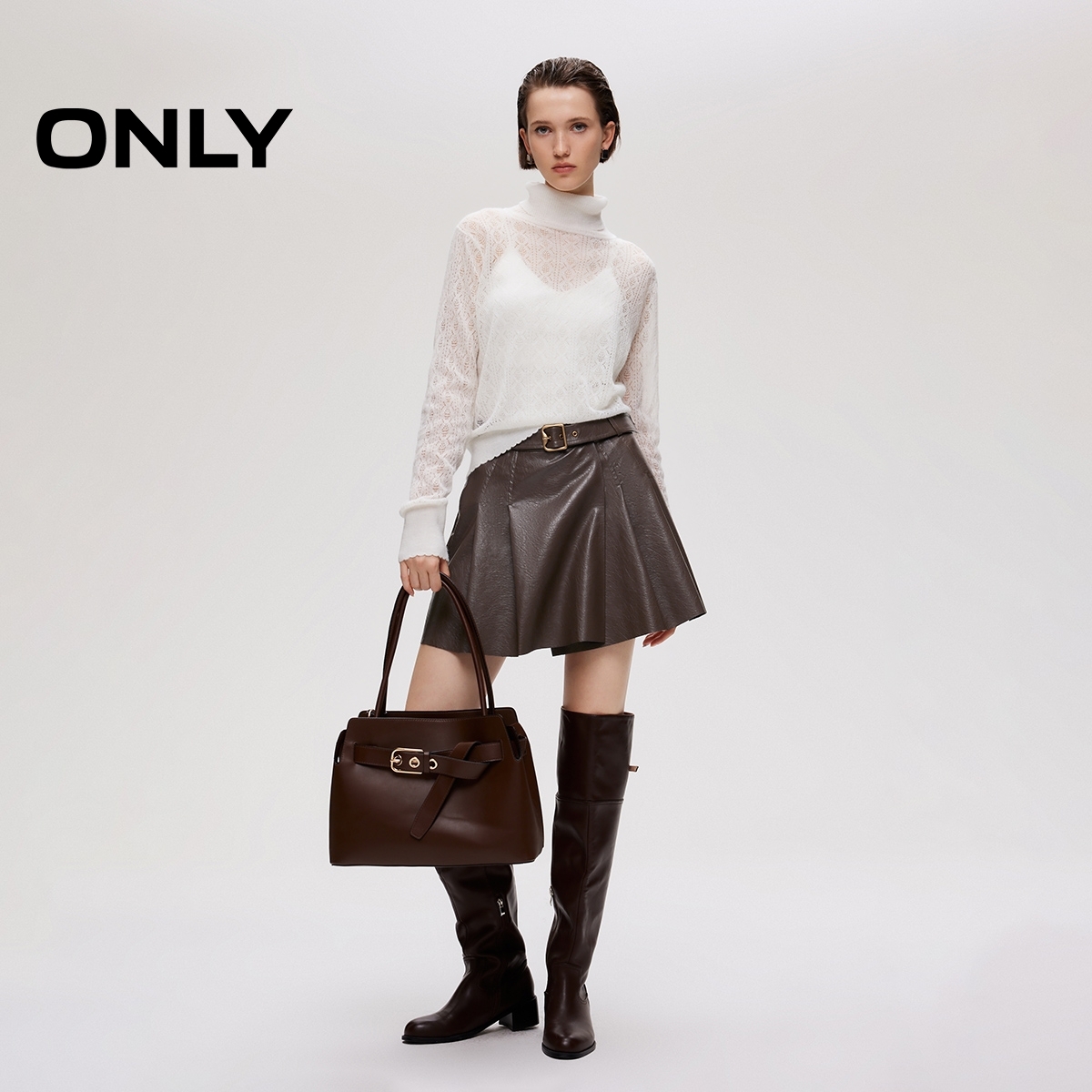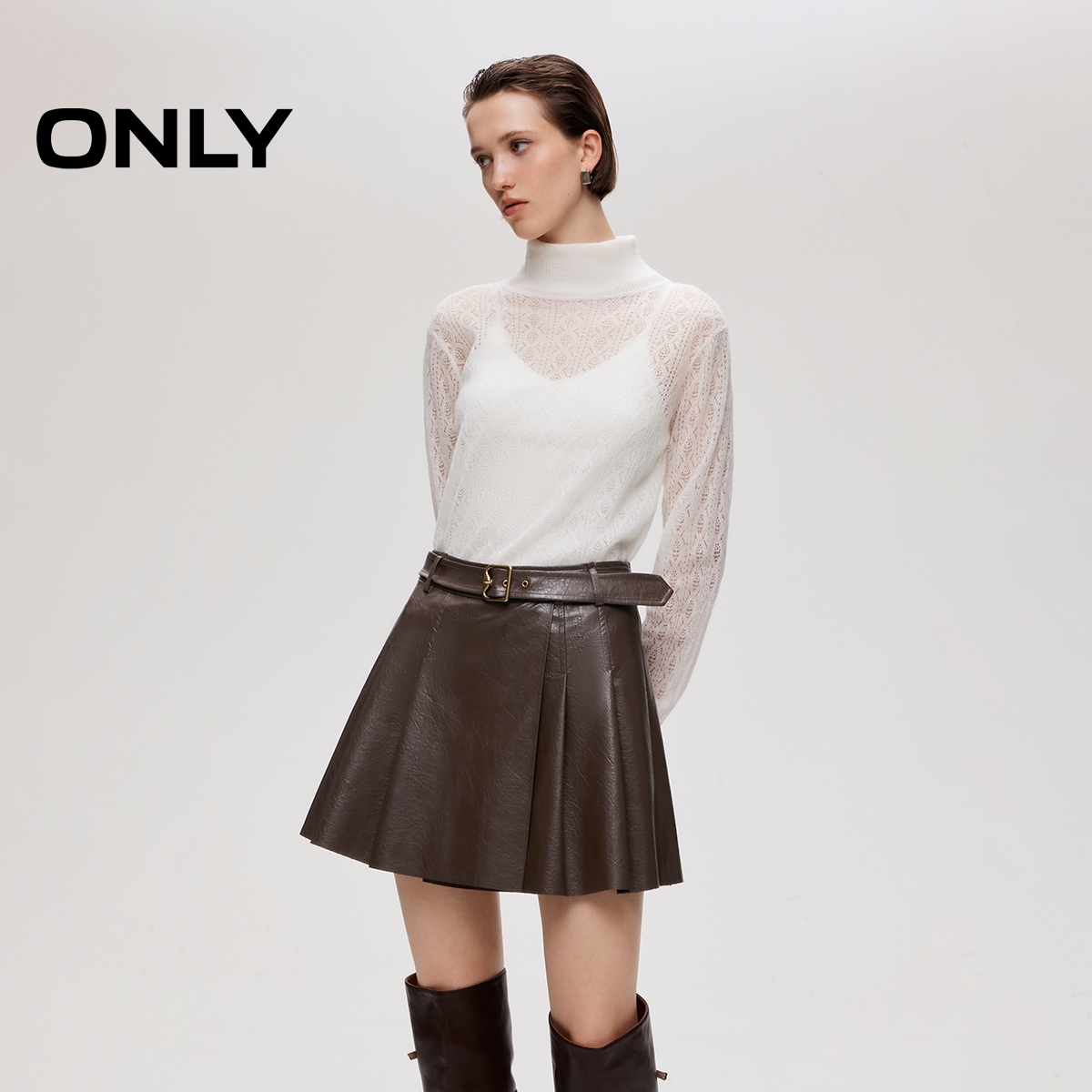 型立体挺括PU百褶裙短裙半身裙女 减龄显瘦A字版 ONLY2025秋季 新款