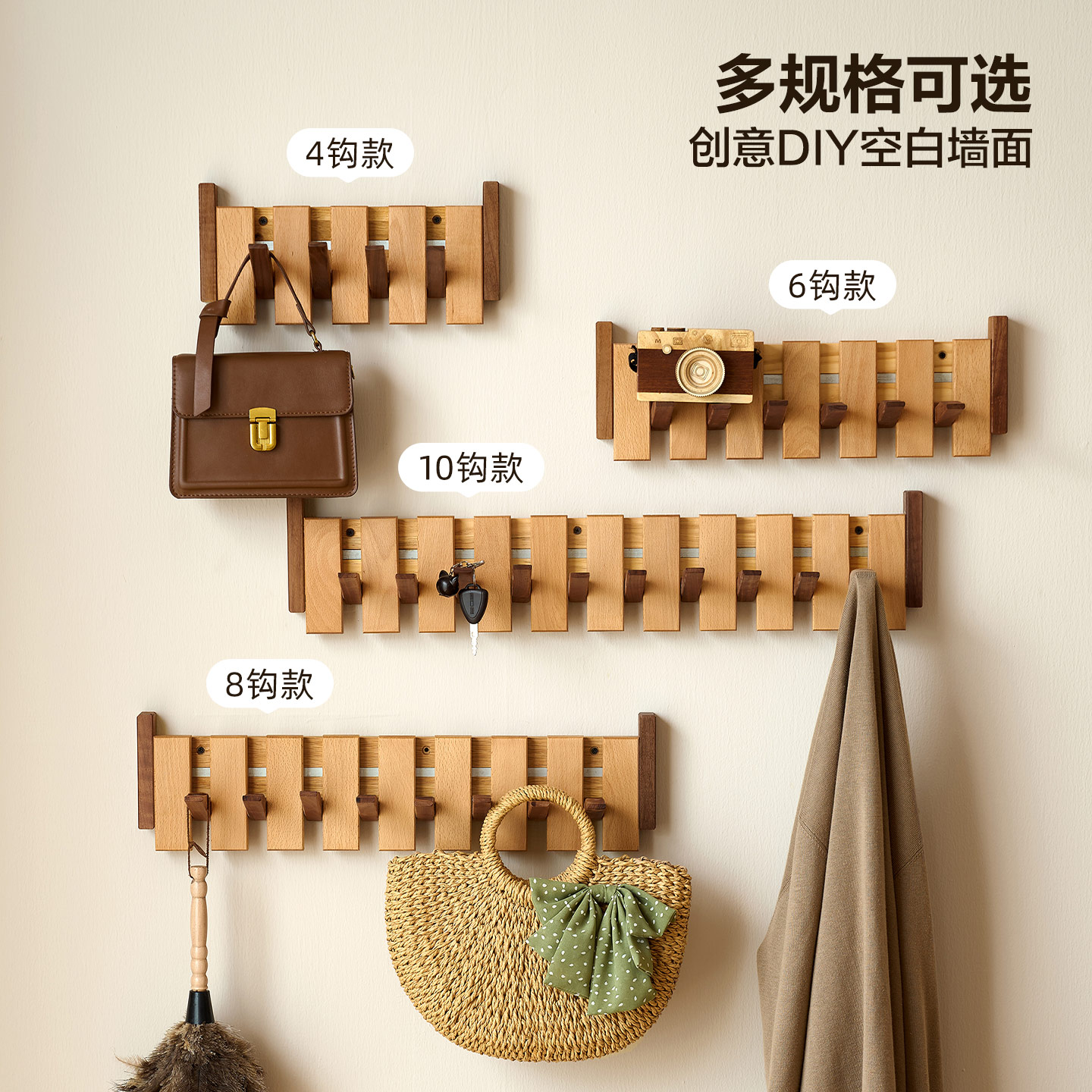 全友家居原木风入户门口琴键实木挂钩玄关墙上衣帽架卧室挂衣架KD