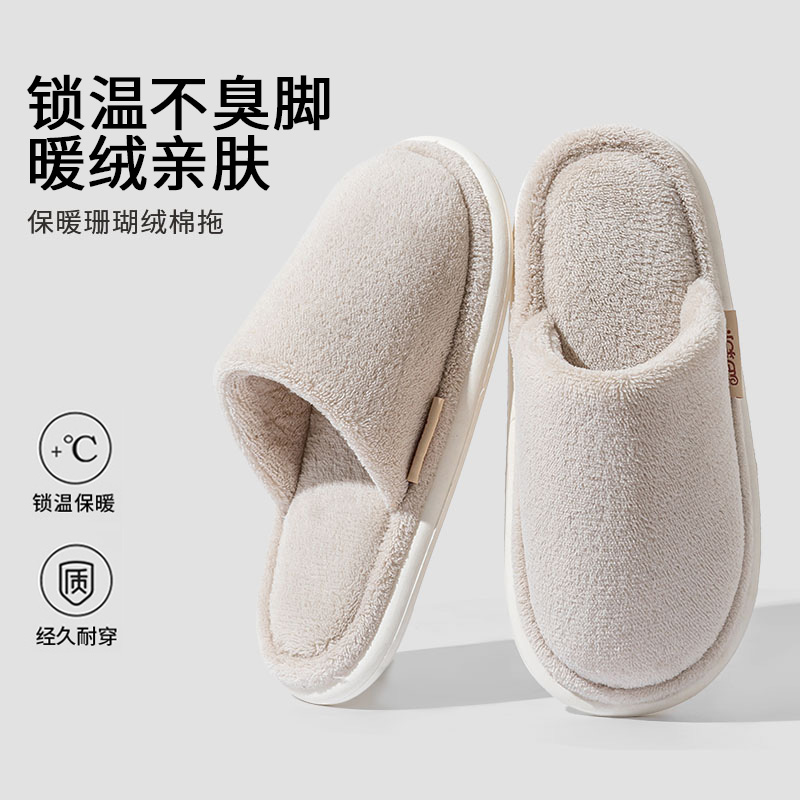 加厚室内家居用舒适防滑耐磨厚底情侣棉鞋 冬季 保暖 女款 居家棉拖鞋