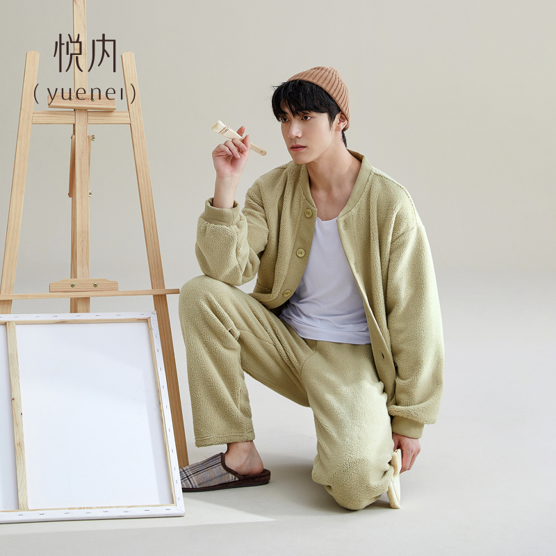 法兰绒加厚加绒保暖珊瑚绒家居服冬天套装 冬款 秋冬季 悦内睡衣男士