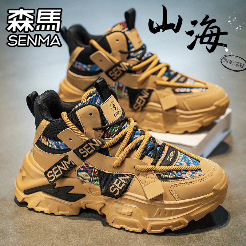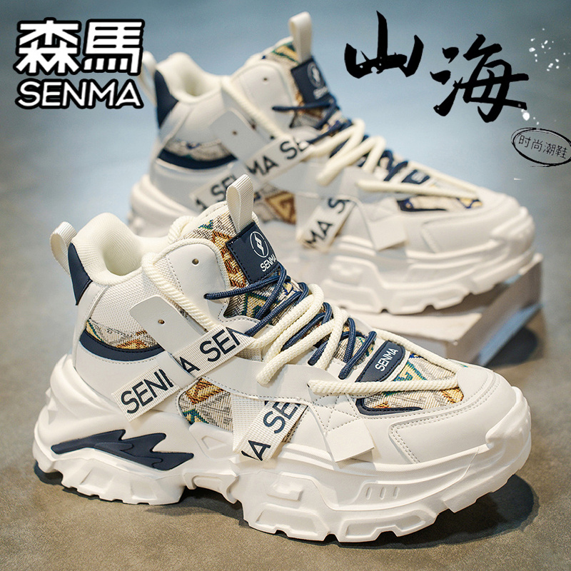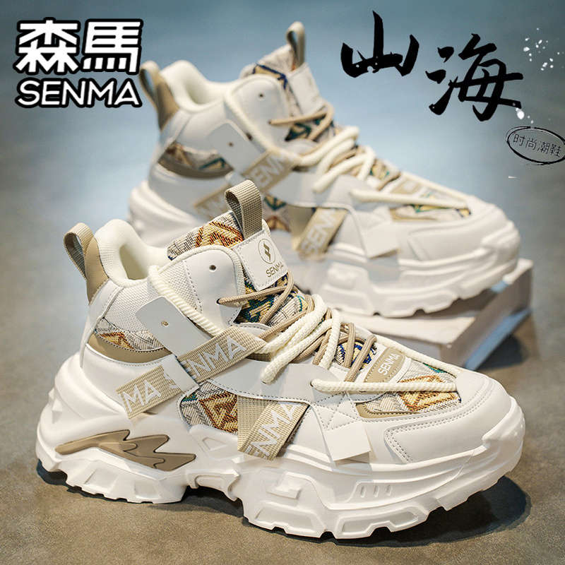 青少年跑步运动篮球增高老爹潮鞋 百搭休闲小白鞋 秋季 森马高帮男鞋