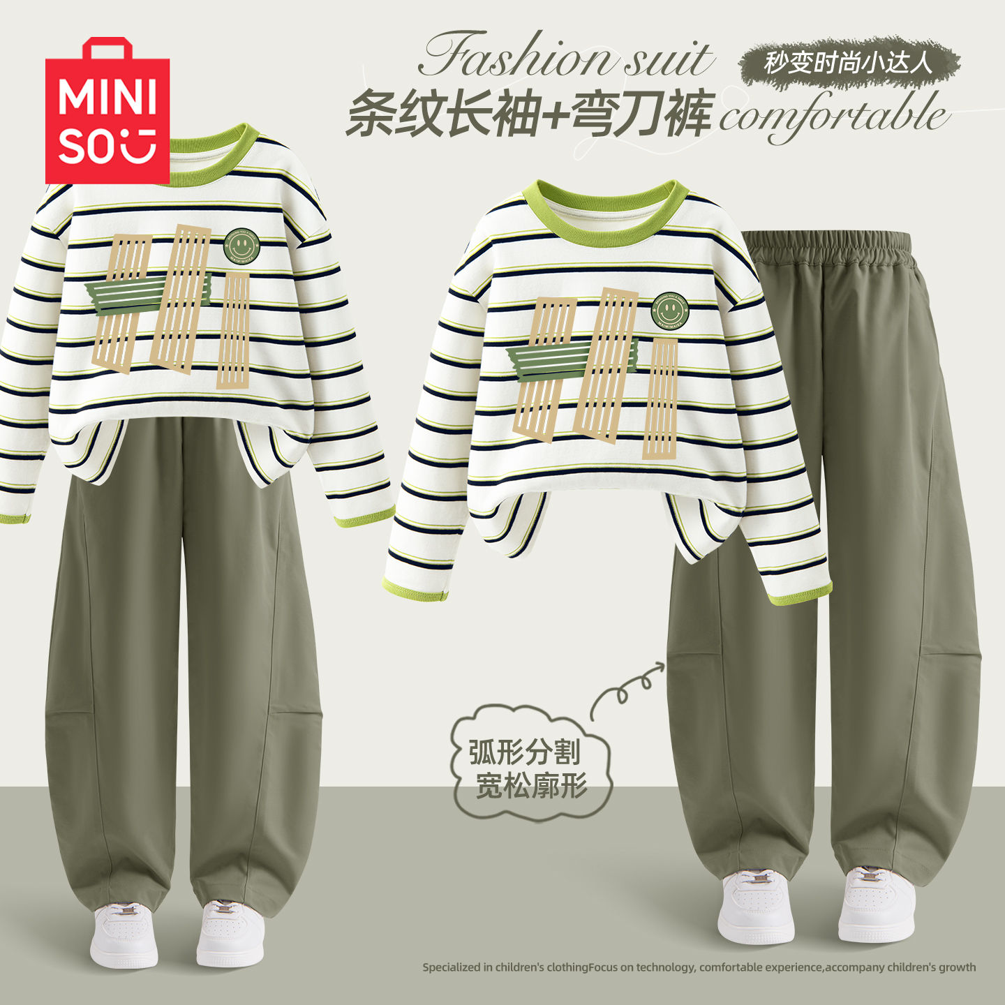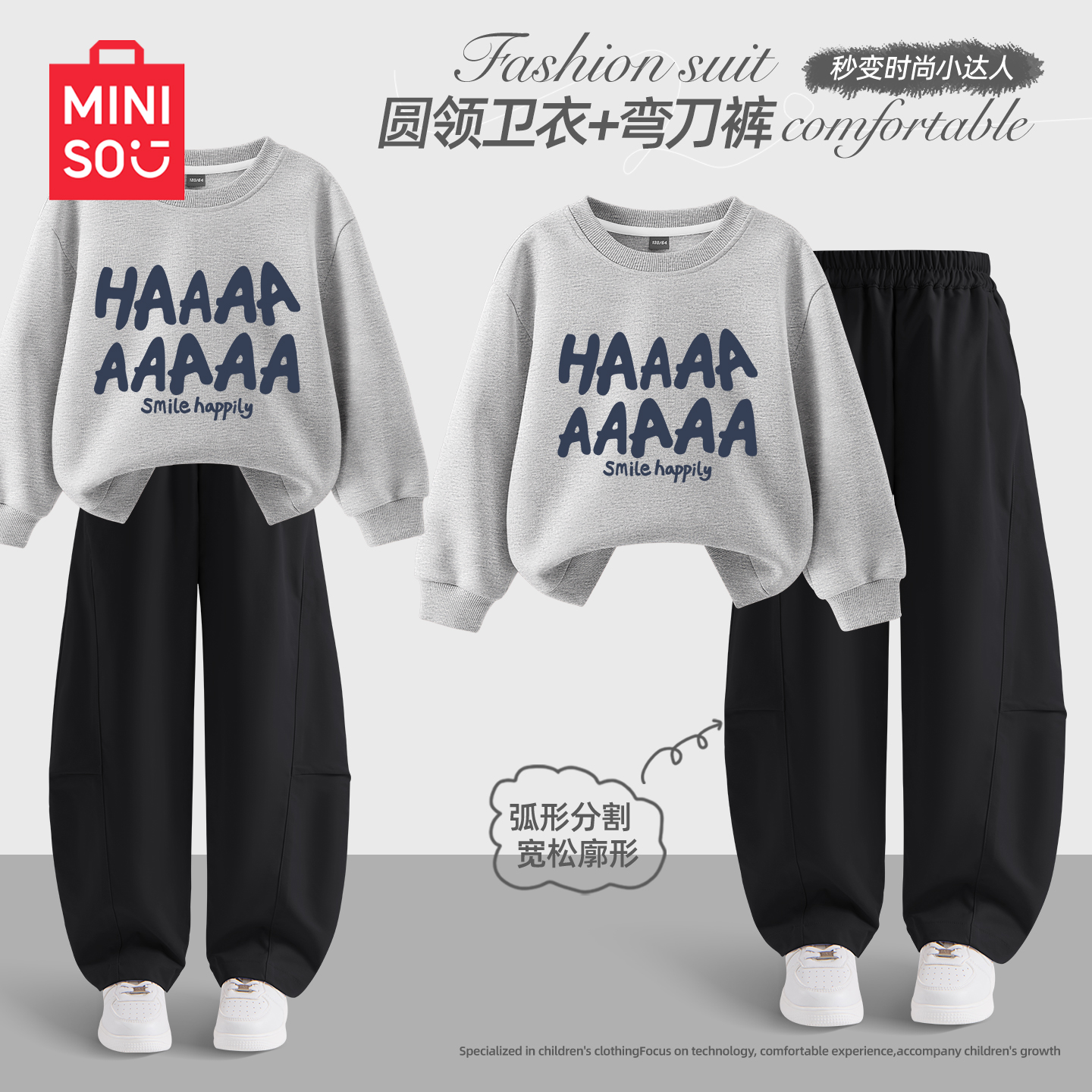 运动服休闲儿童衣服卫衣潮 男大童秋装 名创优品男童秋套装 2025新款
