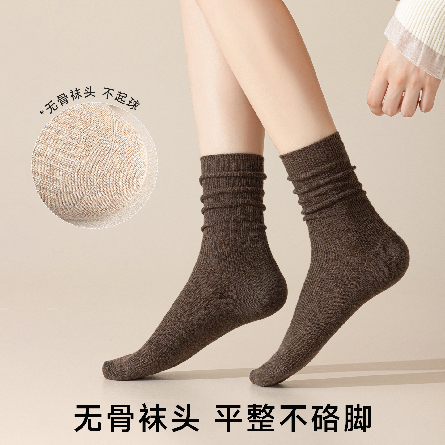无骨白色月子袜 抗菌防臭吸汗棉袜春秋款 袜子女款 纯棉中筒袜秋冬季