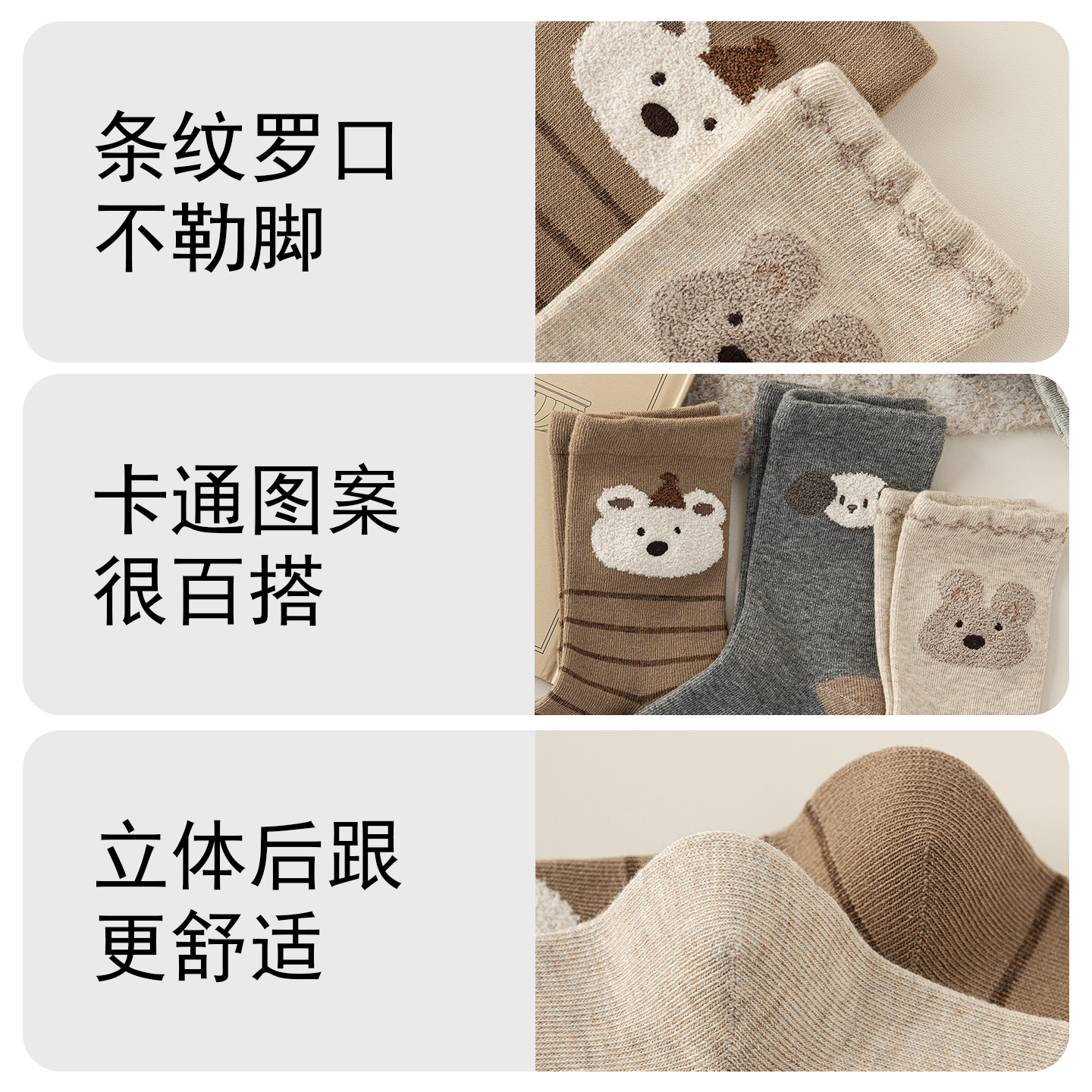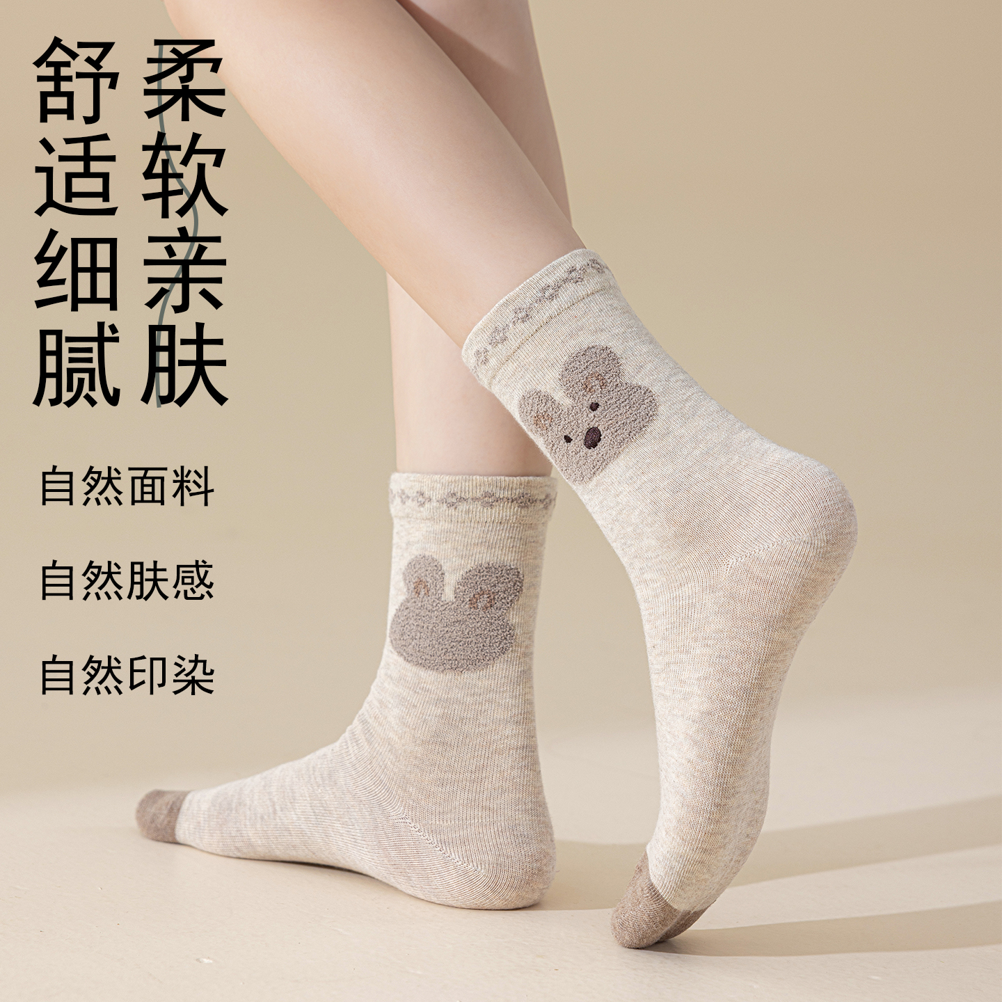 秋冬女袜2025新款 中筒袜女士袜子 粉色可爱少女卡通棉袜搭配小皮鞋