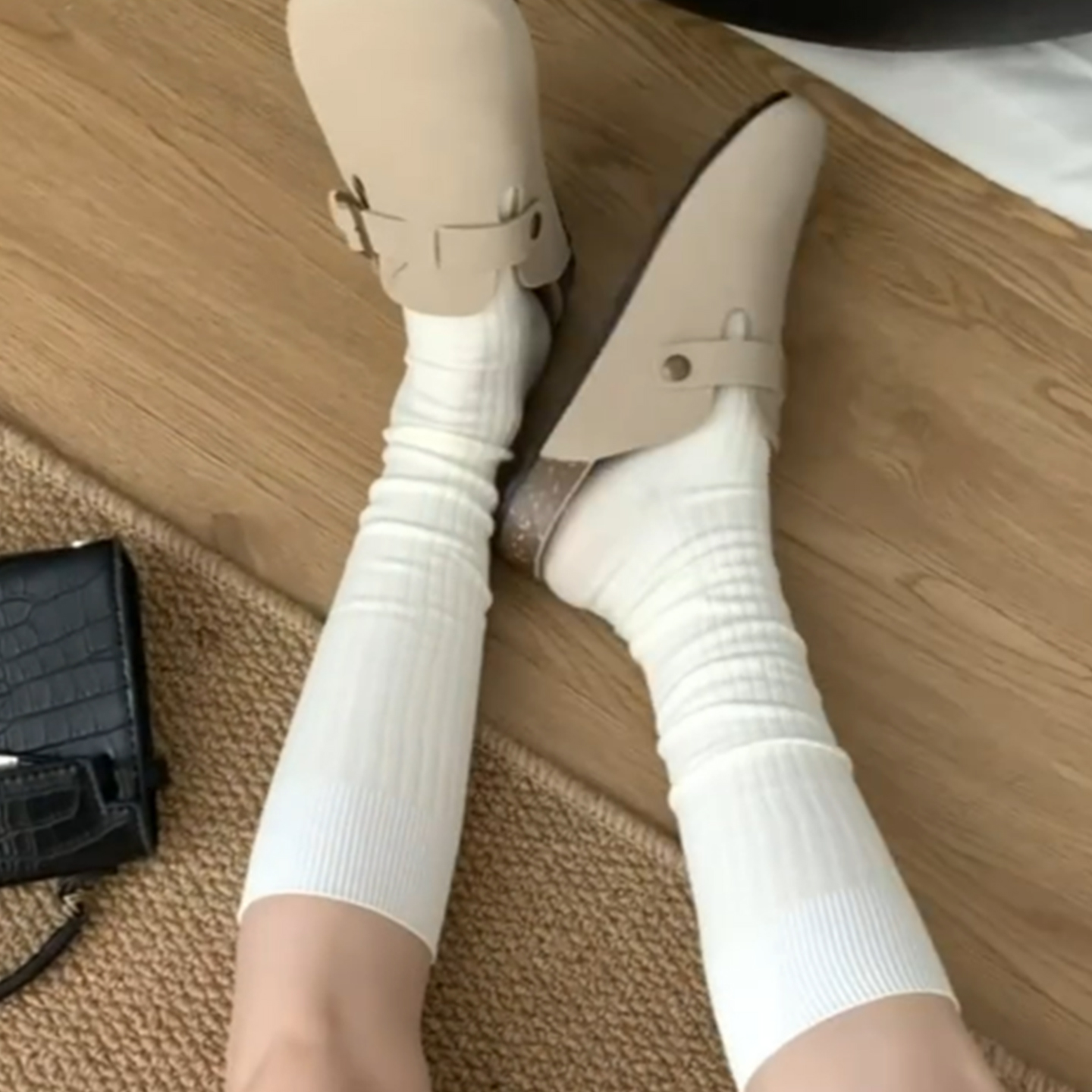 灰色袜子女春秋堆堆长筒袜防臭月子袜无骨透气吸汗纯色棉袜中筒袜