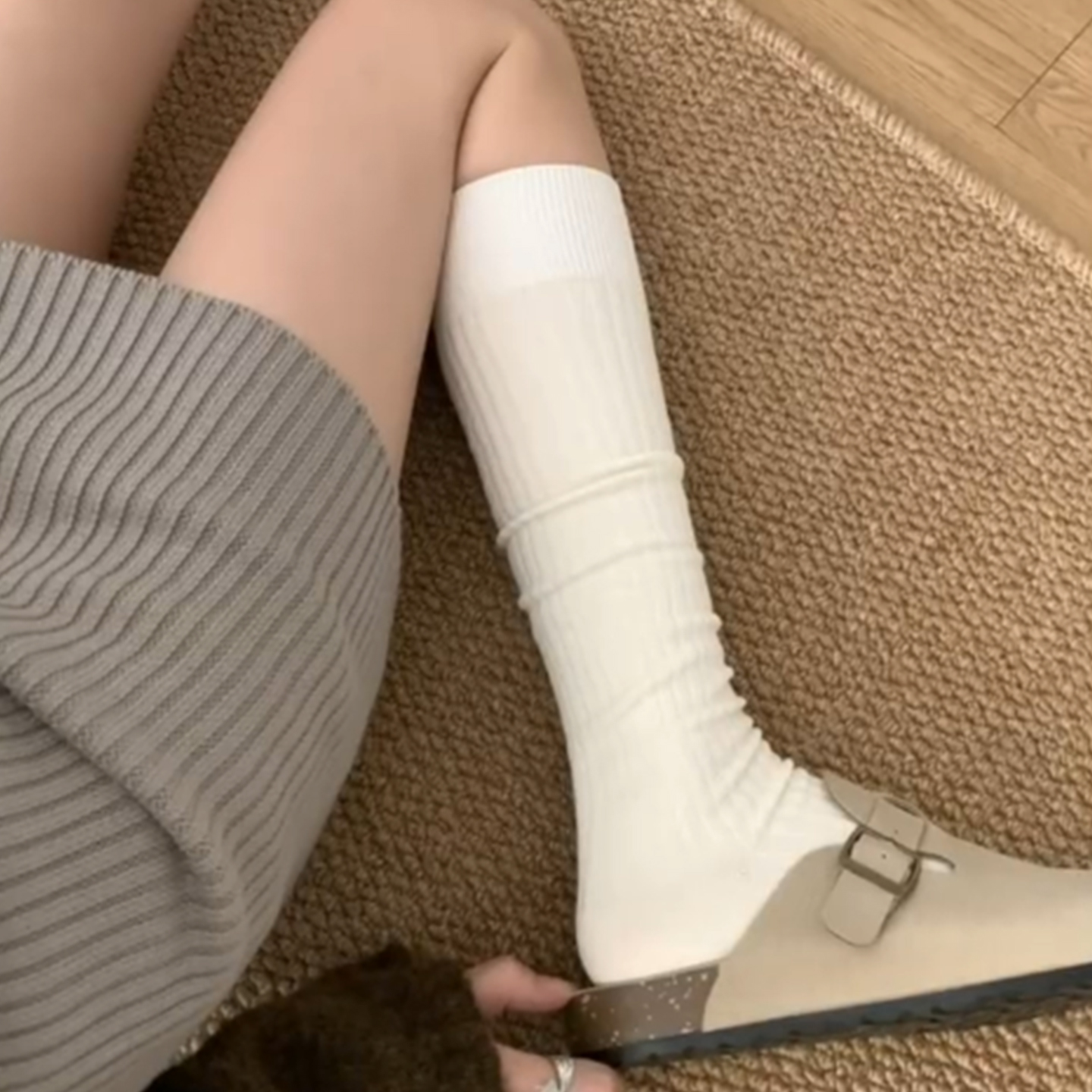 压力小腿袜女半腿jk风中筒堆堆袜配靴子长靴小皮鞋 灰色春秋长筒袜