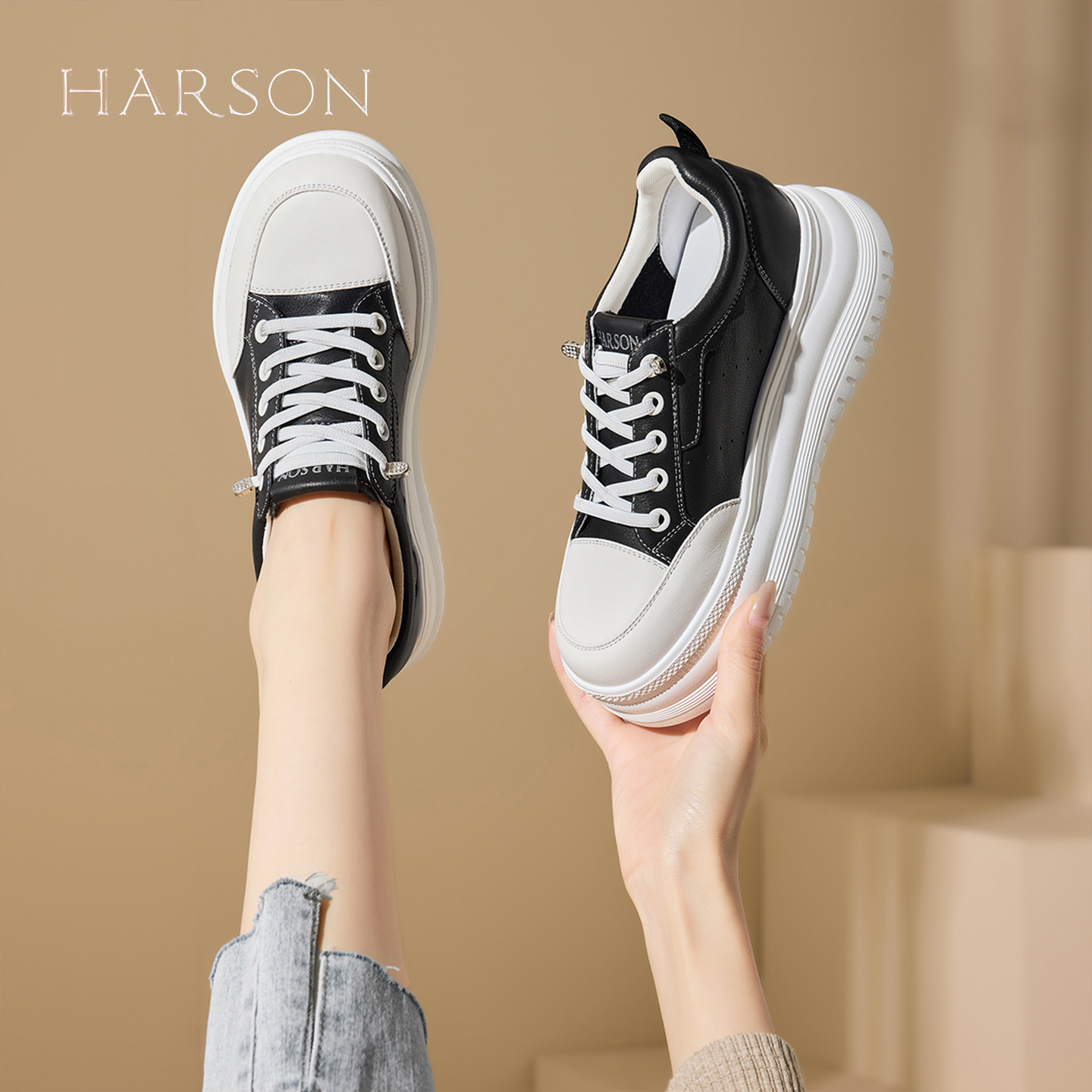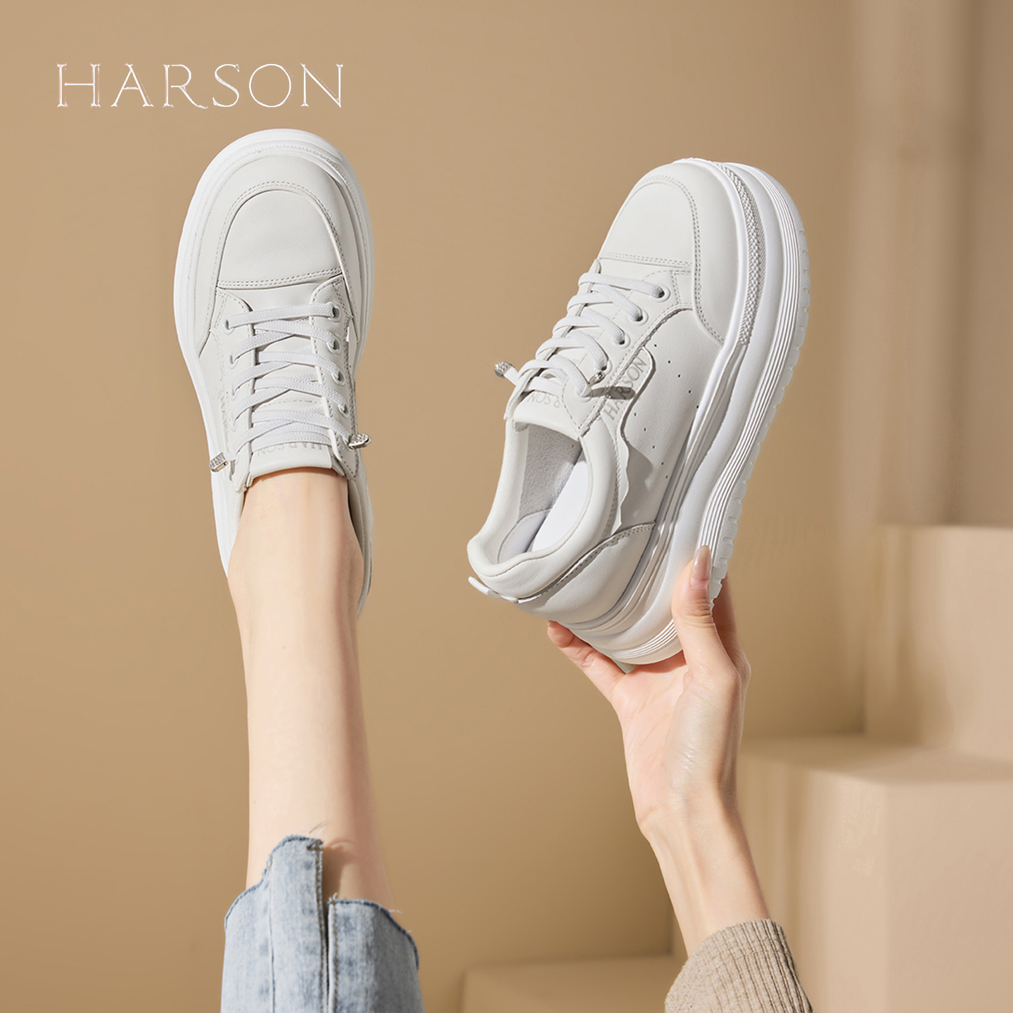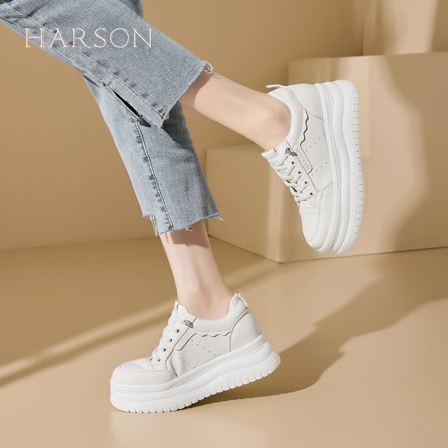 内增高舒适休闲鞋 哈森厚底小白鞋 新款 子2025秋季 子 女鞋