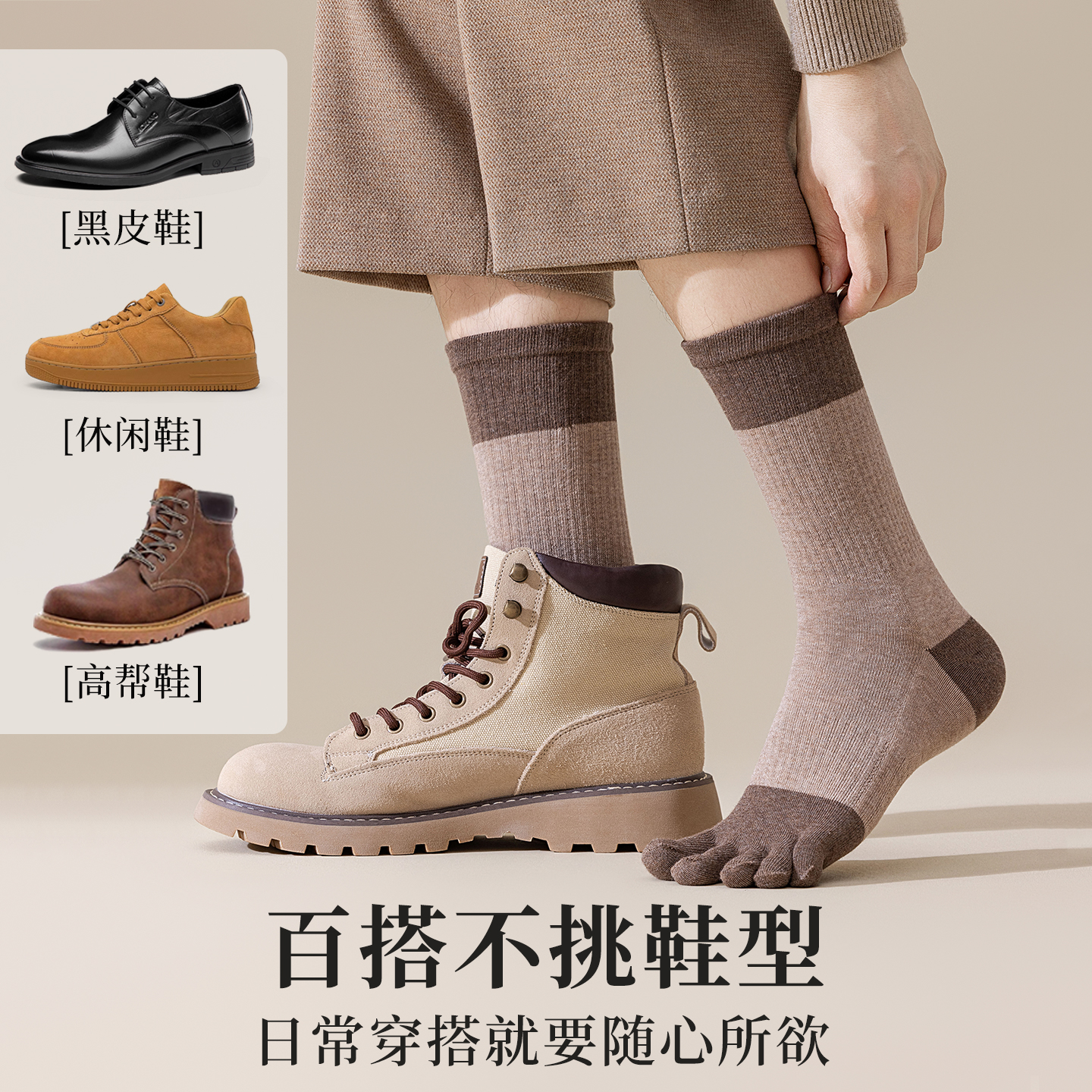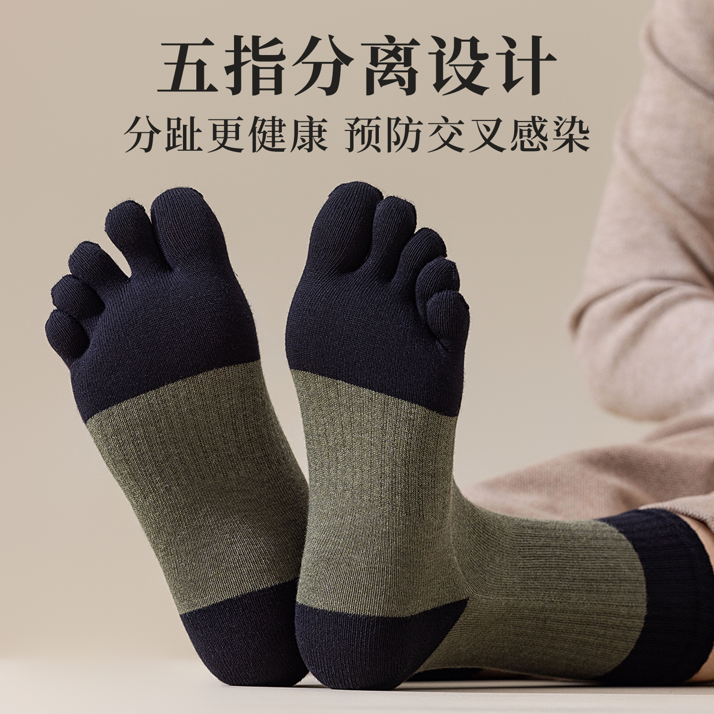 五指袜男纯棉中筒春秋季 分趾长筒袜子 防臭防脚气抗菌吸汗秋冬男士