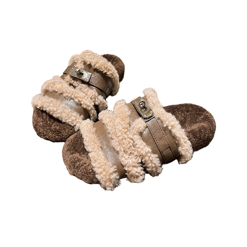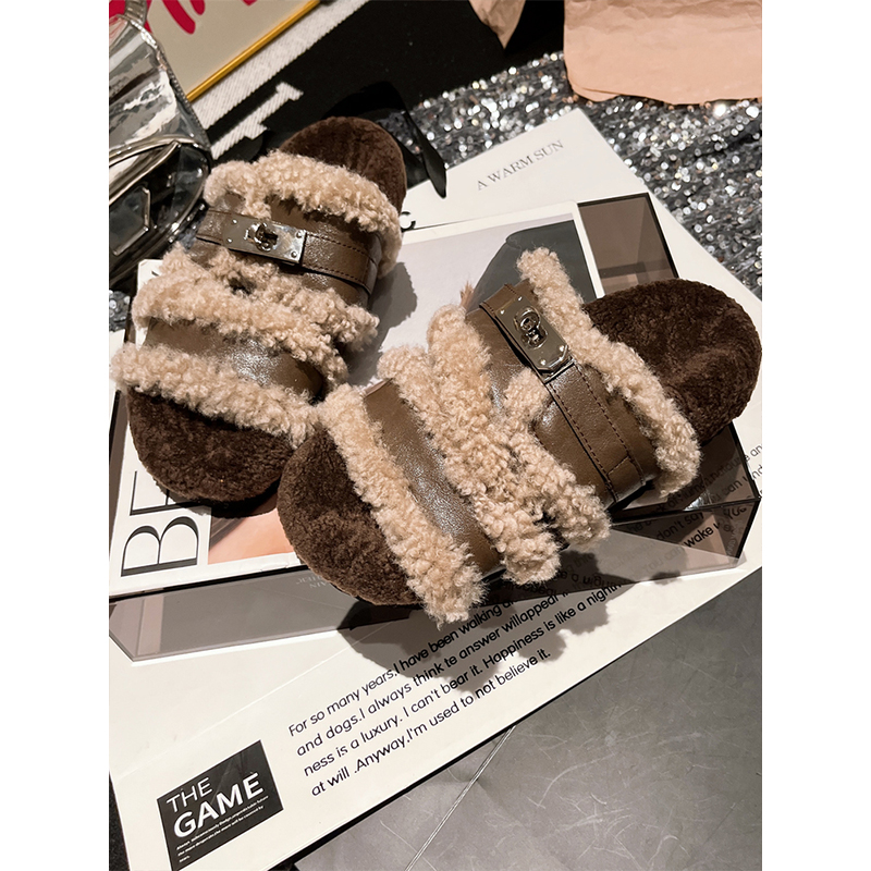 厚底棉拖鞋 2025秋冬季 女外穿一字拖潮鞋 百搭毛毛拖鞋 网红豹纹时尚