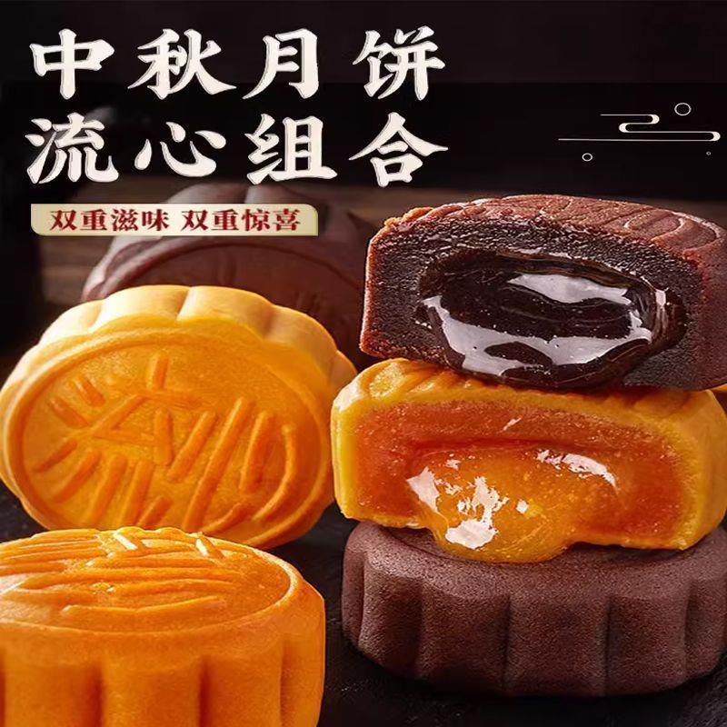 巧克力混合口味礼盒中秋送礼糕点 奶黄流心月饼广式 央妈力荐 港式