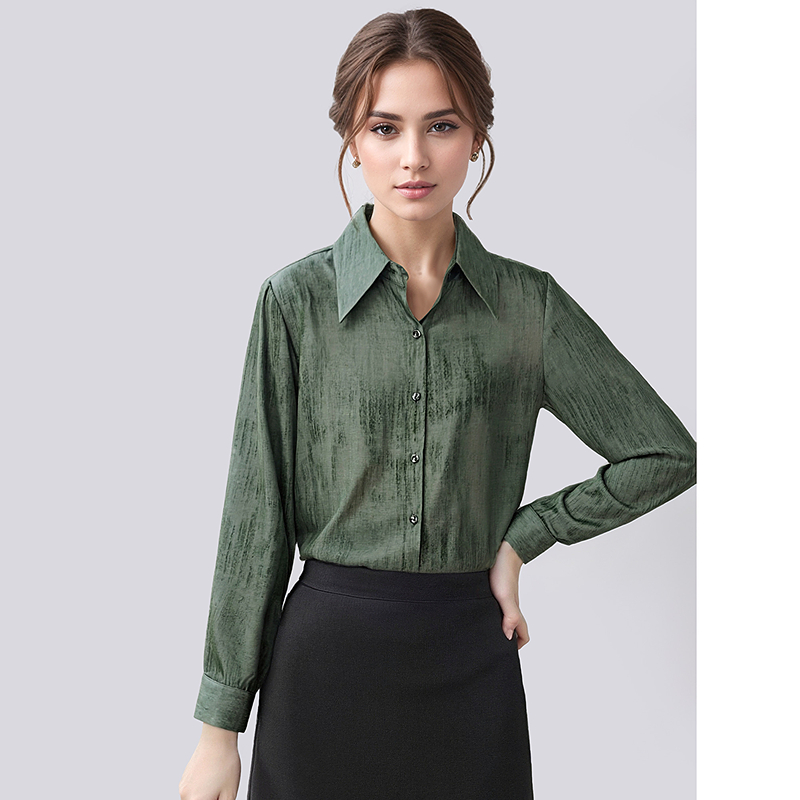 女上衣衬衣职业通勤春秋时尚 雪纺衬衫 高级感翻领 气质长袖 2025新款