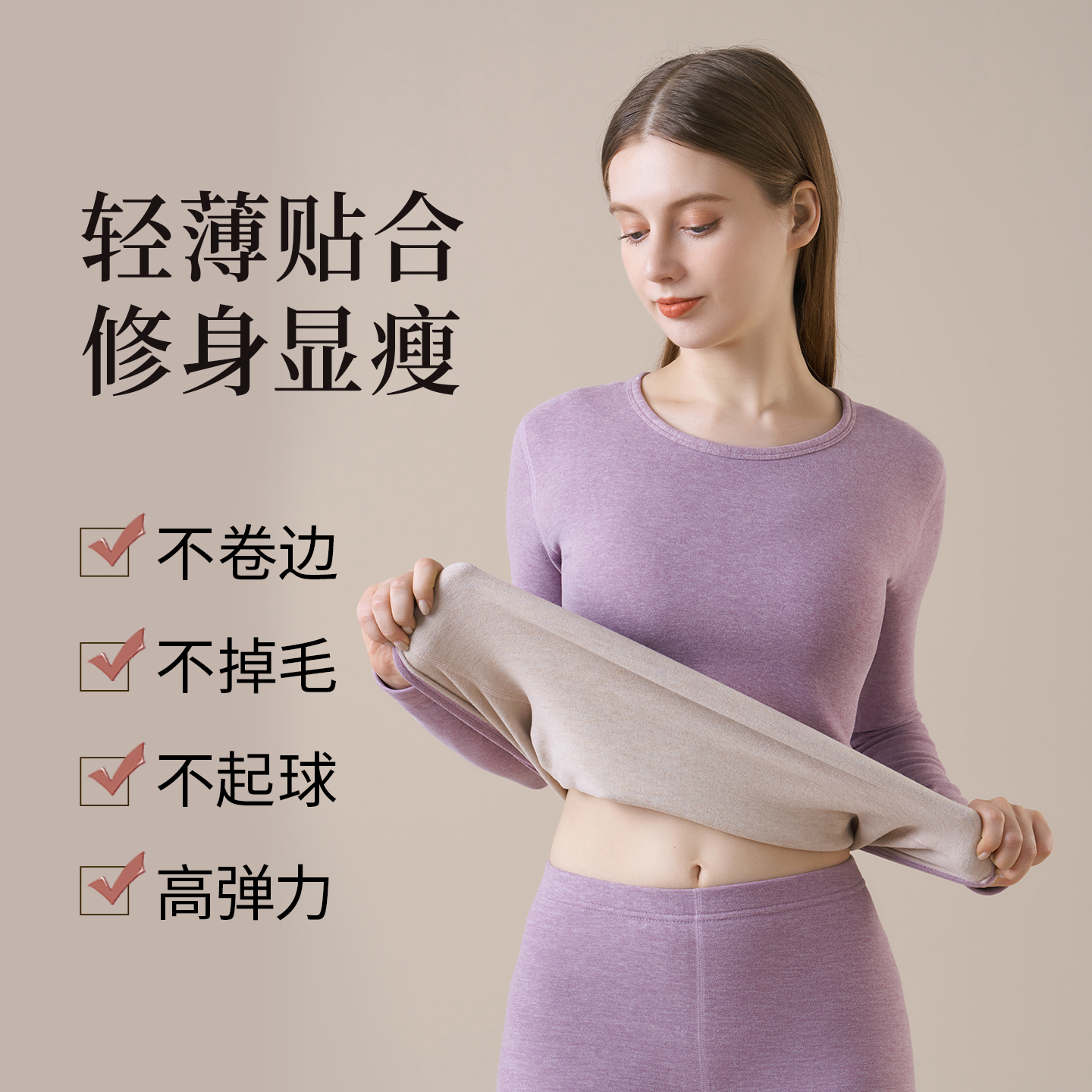 柔代羊绒蚕丝保暖内衣女秋冬季 简约打底内穿保暖秋衣 加厚修身