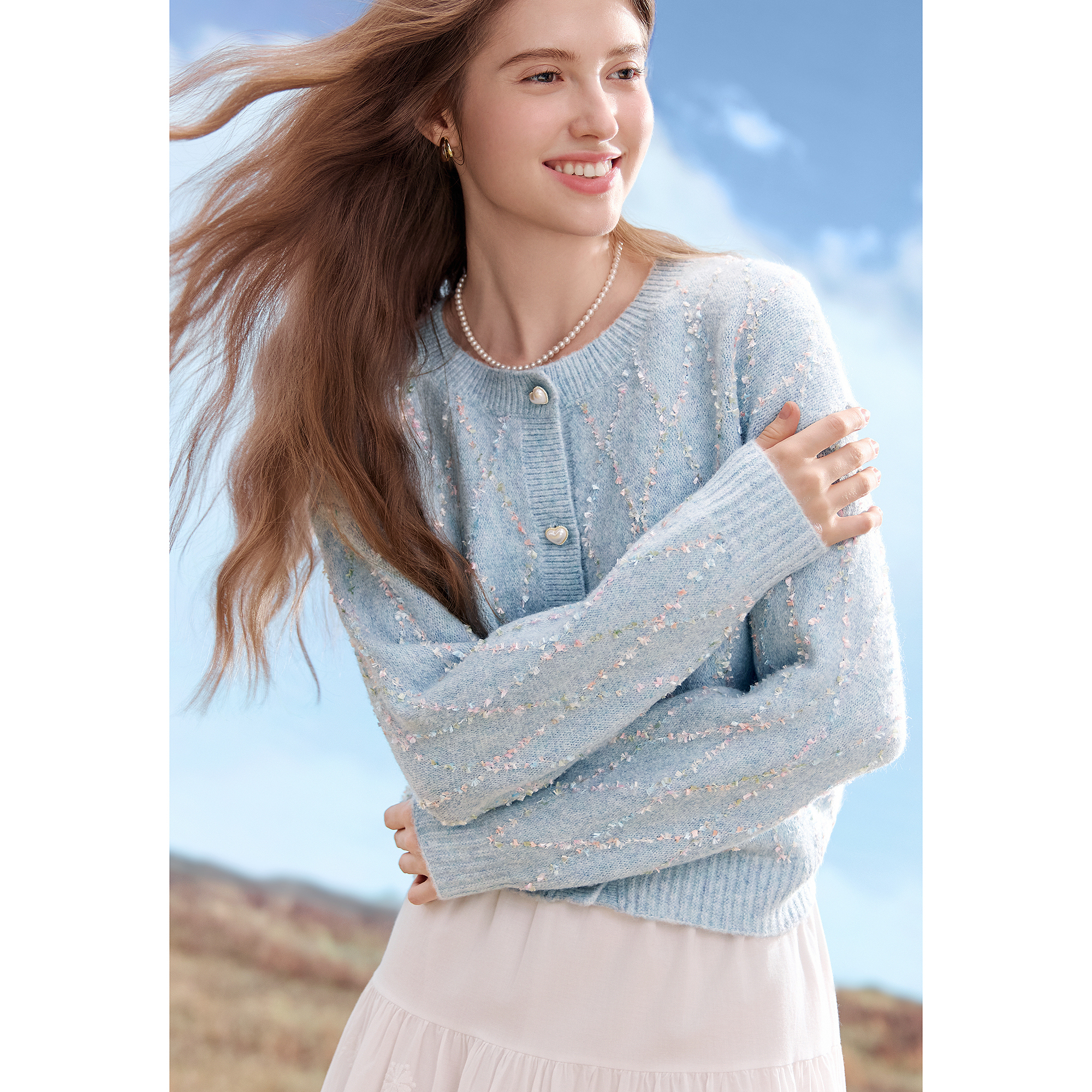 羊毛针织开衫 百家好2025秋新款 女连帽假两件毛衣外套 House Basic