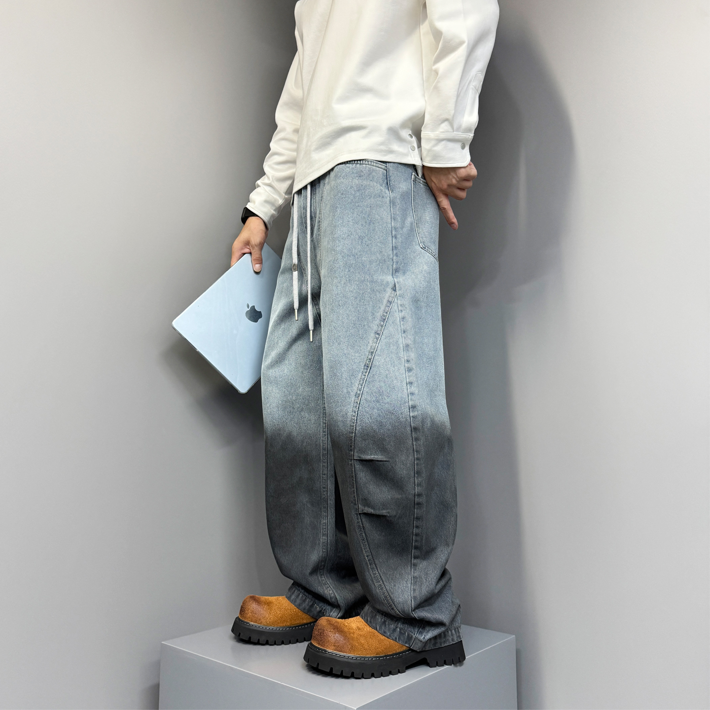 25夏季 GXG男装 休闲长裤 宽松直筒水洗牛仔裤 莱赛尔薄款