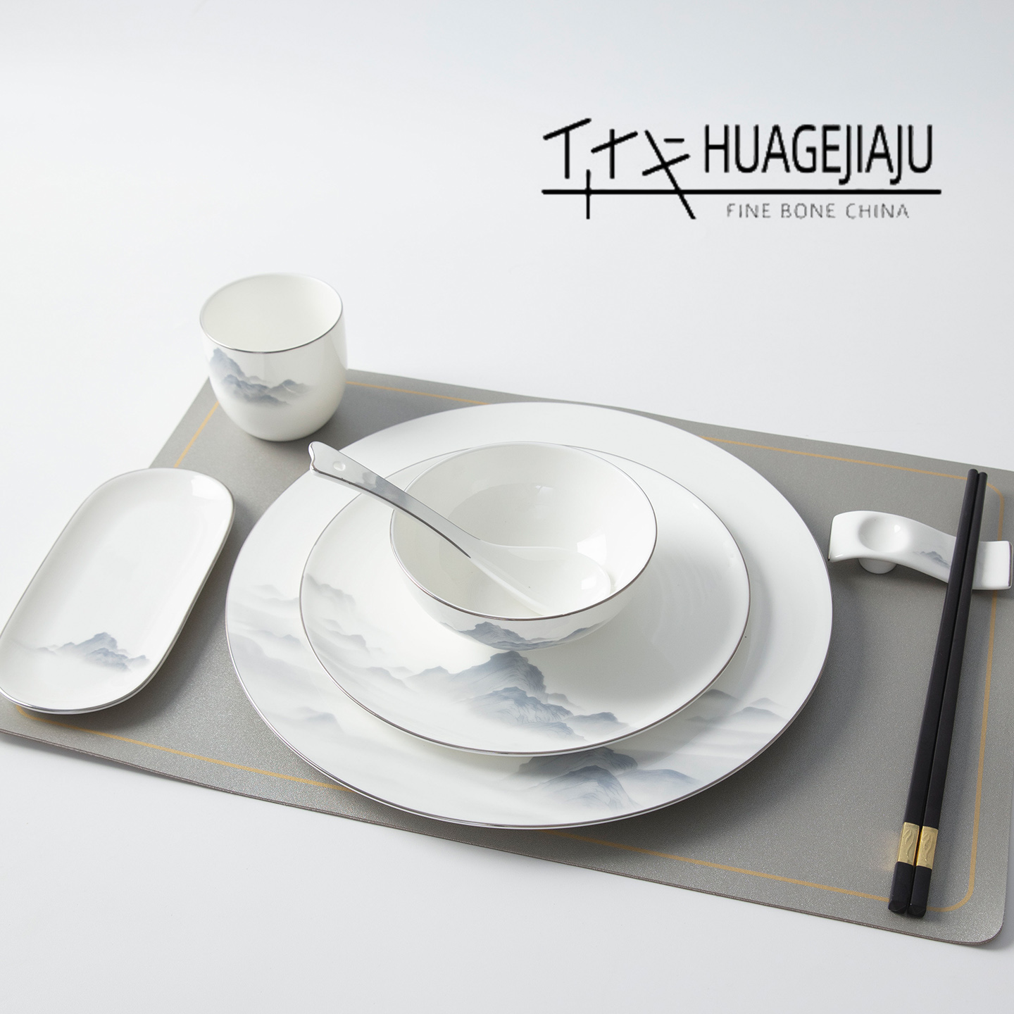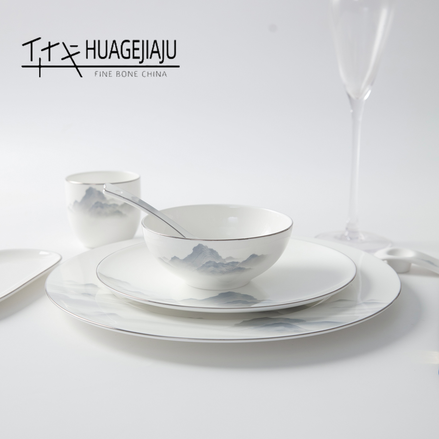 银边骨瓷新中式 酒店摆台碗盘组合餐厅会所包厢可印字定制 餐具套装