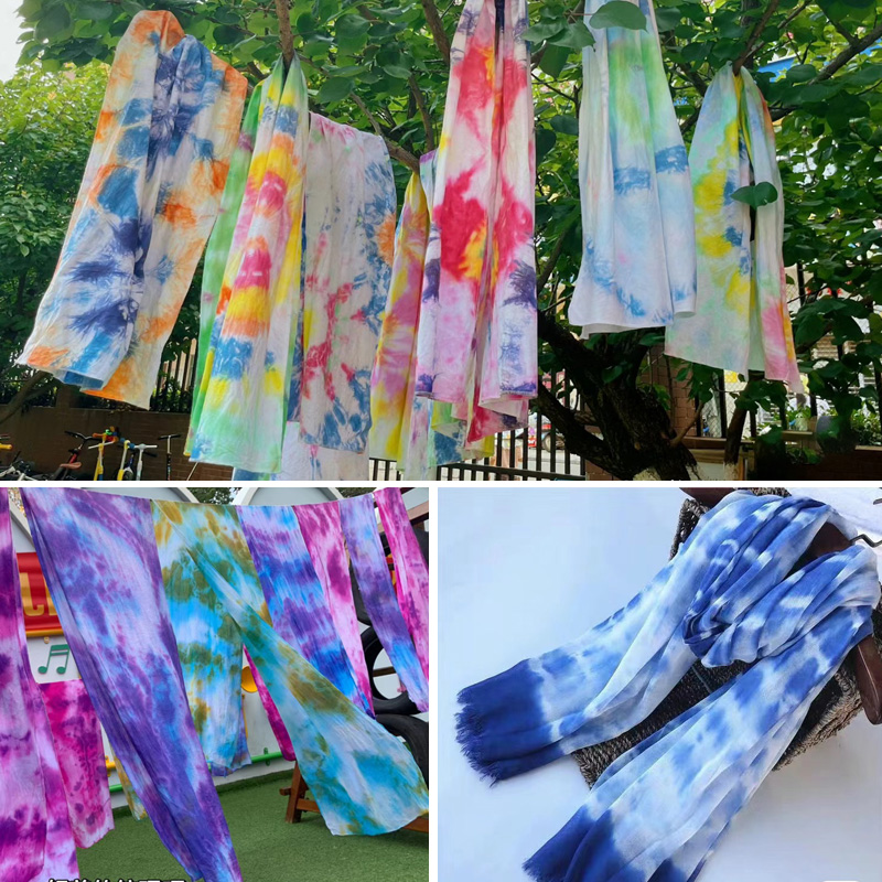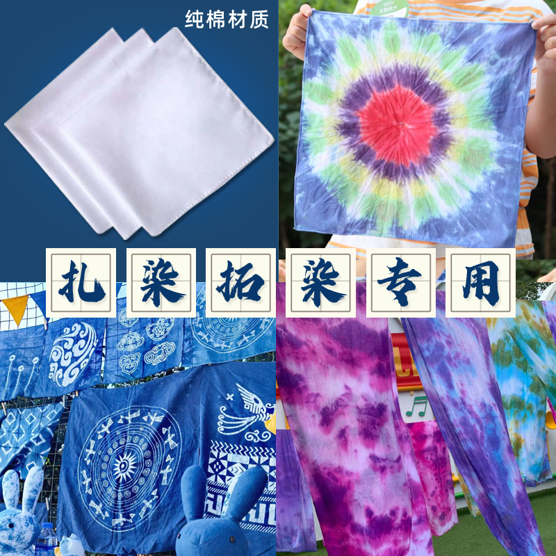 扎染白色白胚棉布料幼儿园方巾手帕发圈t恤手工diy材料包工具套装