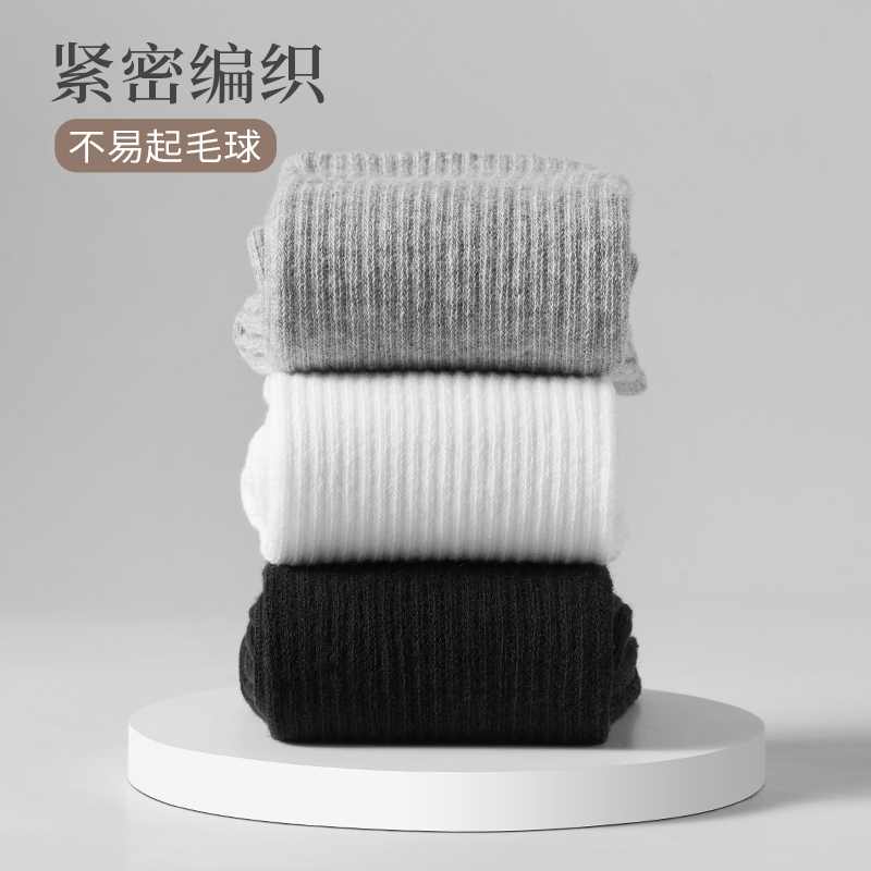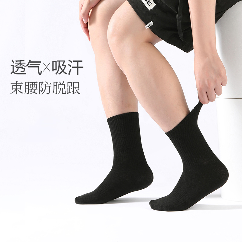 长袜棉袜四季 男士 袜子防臭运动袜男中筒袜新疆棉黑色白色短袜秋季