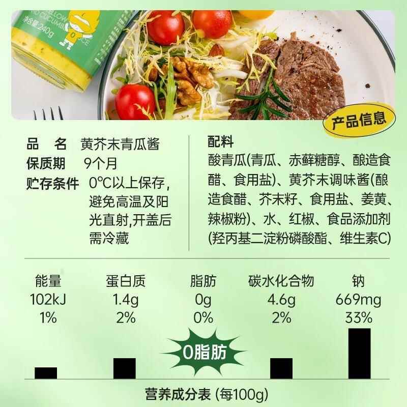 黄芥末酸黄瓜酱低0脂肪酱料酸黄瓜酱面包酱汉堡酱 厚皮橙同款