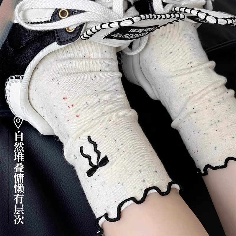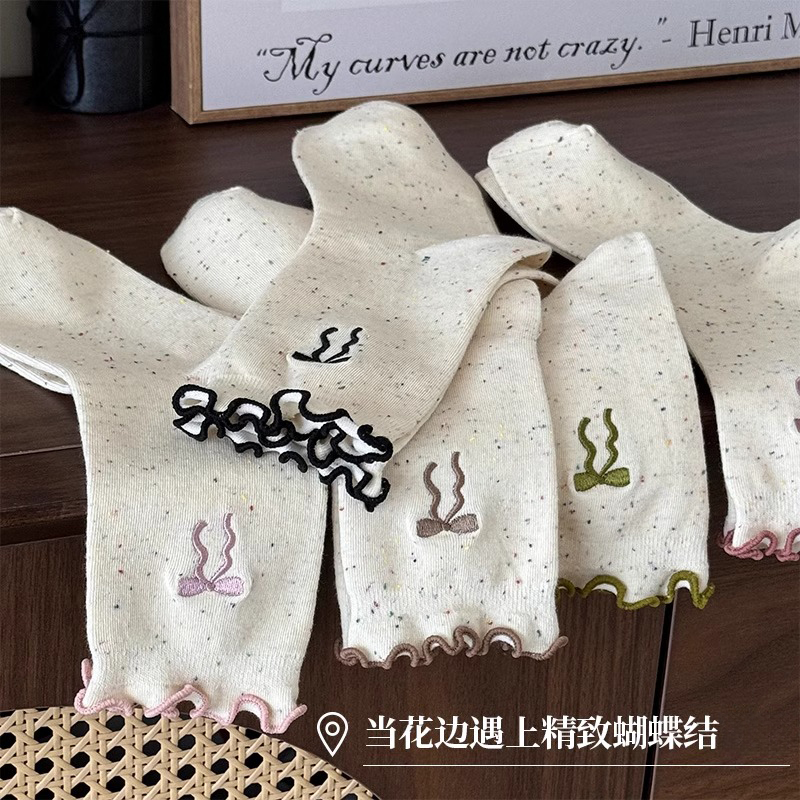 纯棉中筒袜蝴蝶结木耳花边学生长袜 春秋季 堆堆袜子女2025新款 爆款