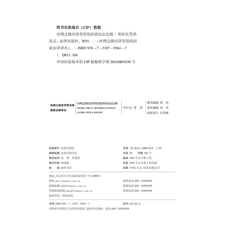 2025新书 法律出版 丝绸之路经济带沿线国家民法总则 丝绸之路经济带沿线国家法律译丛 社9787519793647 邓社民 正版
