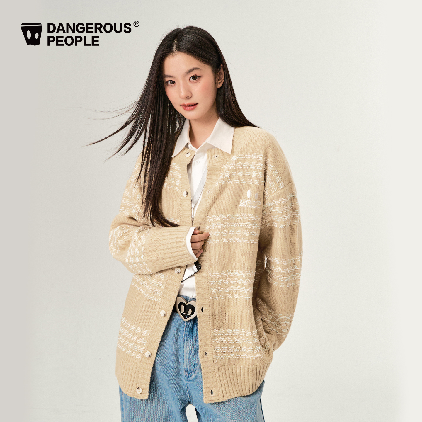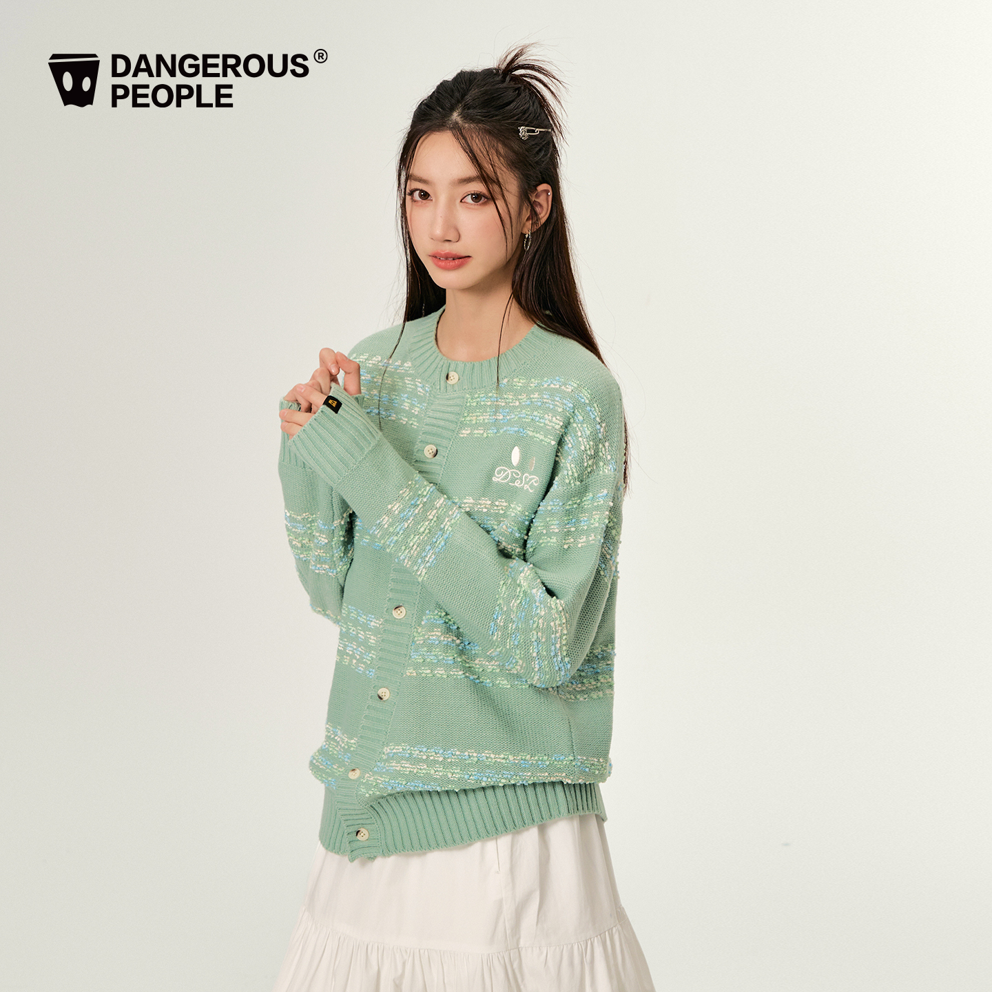 Dangerouspeople薛之谦dsp小眼睛字母绣花慵懒落肩宽松针织开衫
