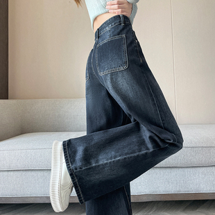 子 女高腰显瘦百搭慵懒宽松拖地裤 2025早秋新品 深色阔腿直筒牛仔裤