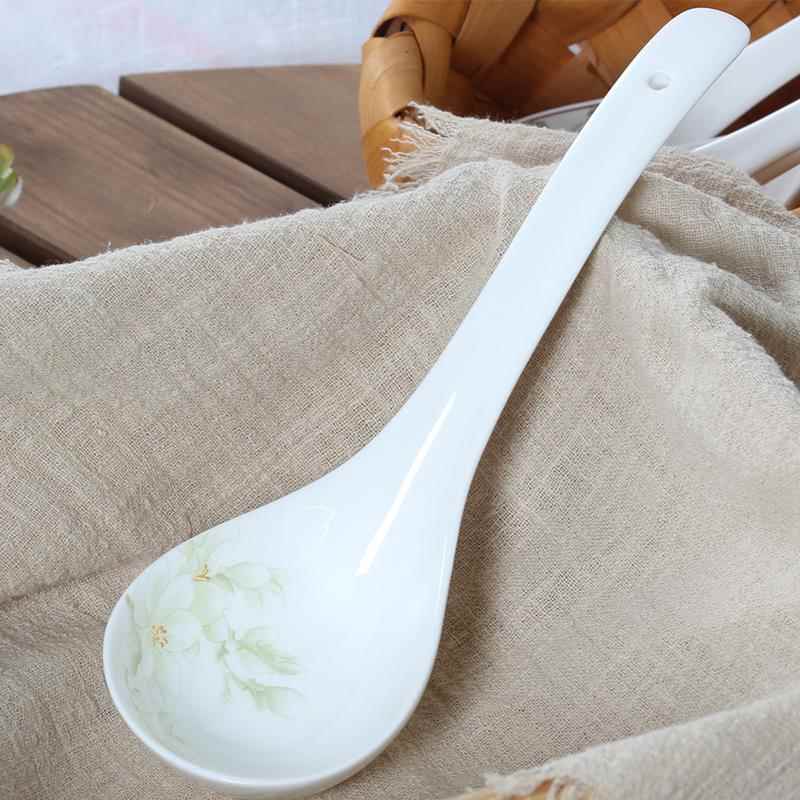 大汤勺 骨瓷餐具大马戈勺 长柄勺子陶瓷勺创意纯白色骨瓷勺子套装